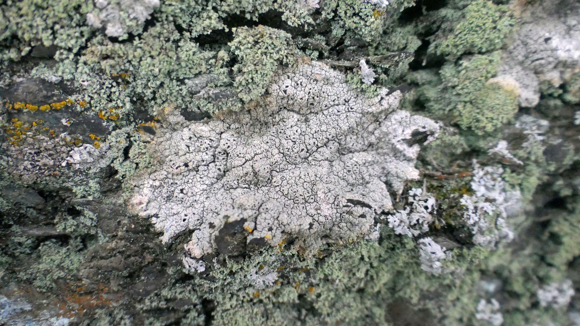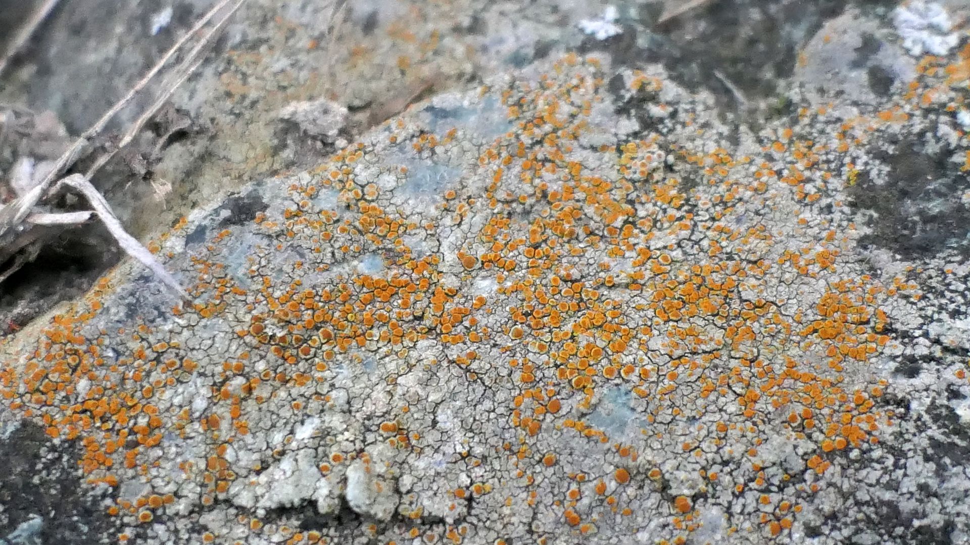 Bild 16 Orange Caloplaca mit graubraunem Thallus, vermutlich Rufoplaca subpallida
