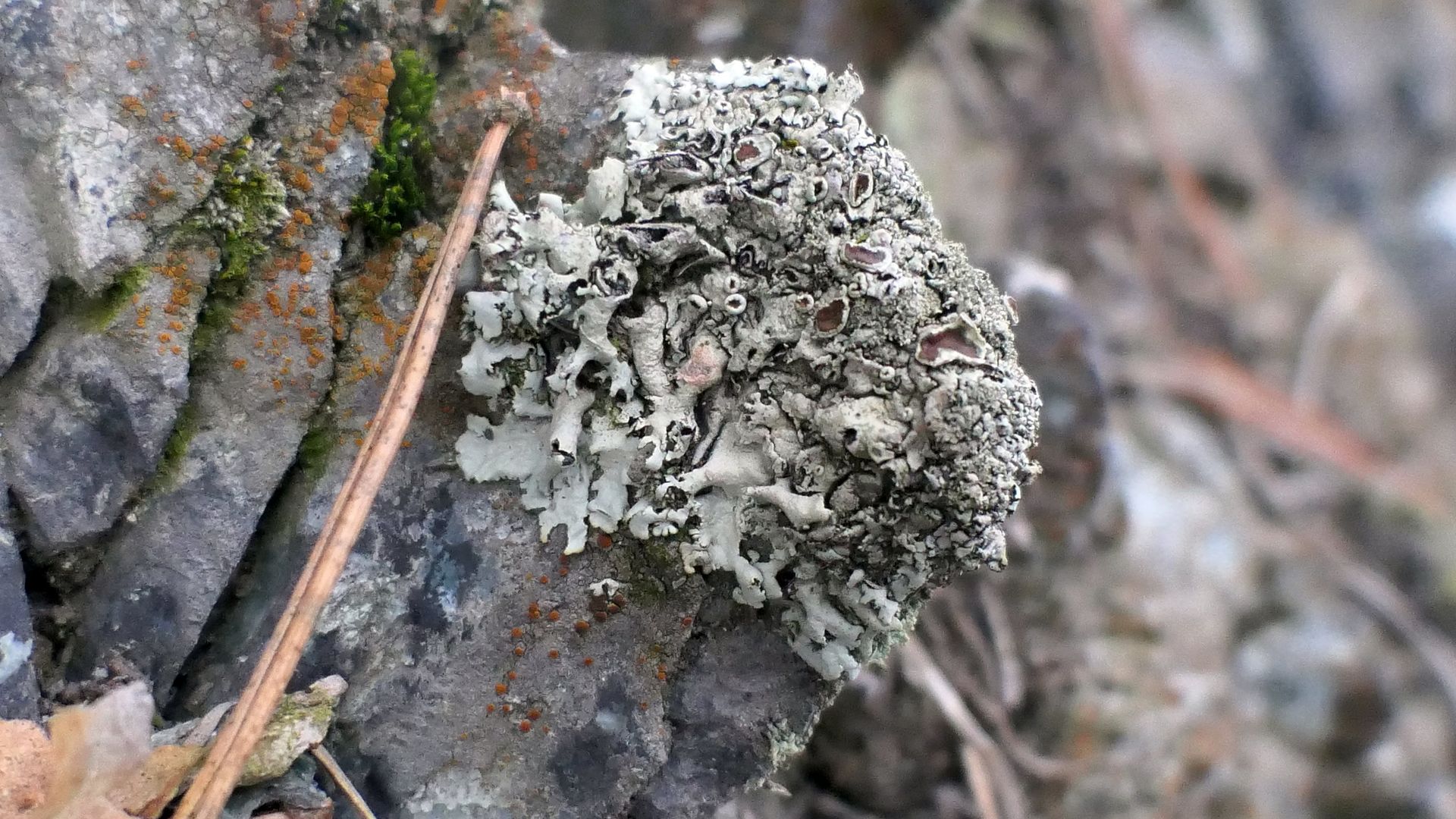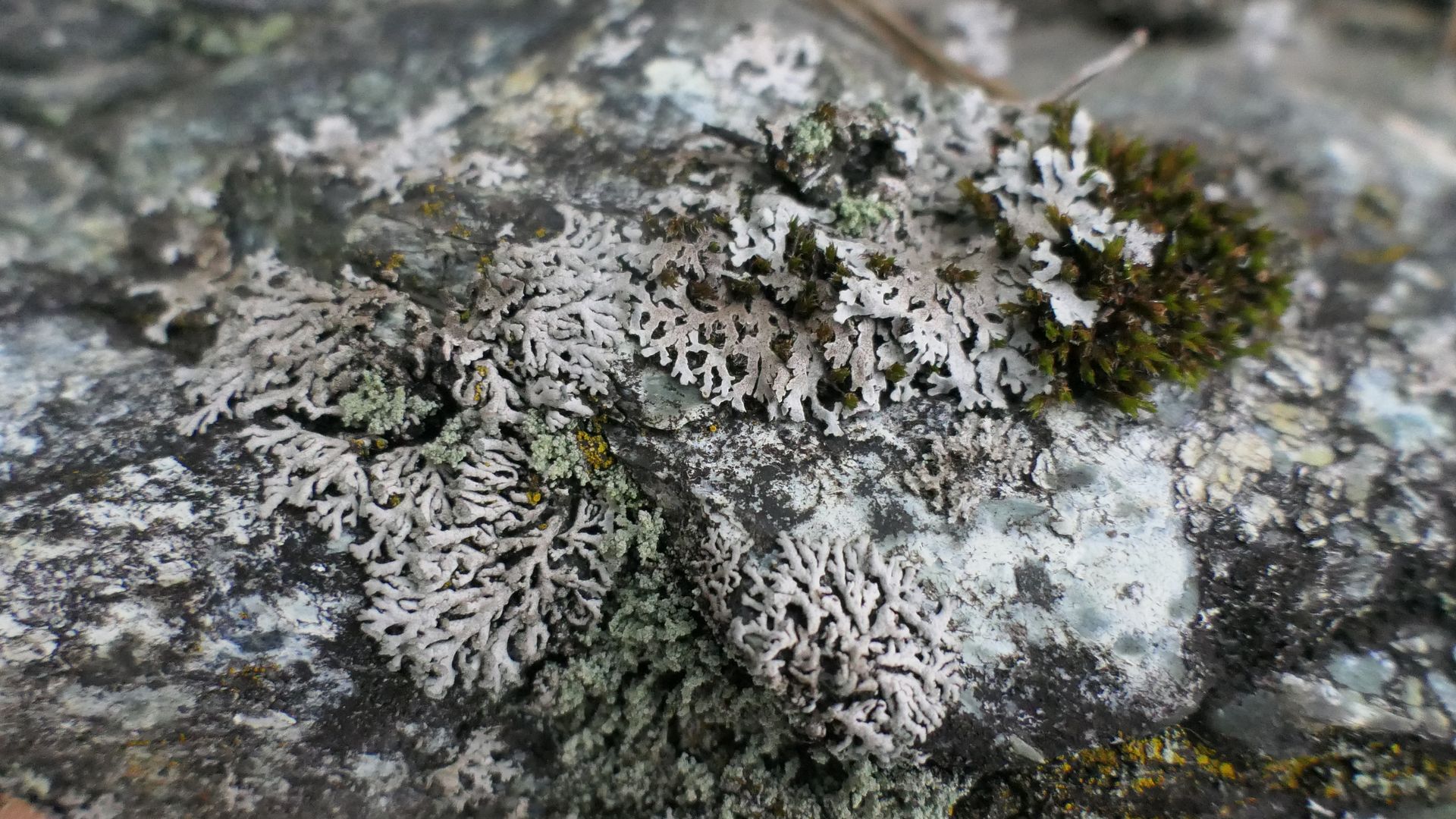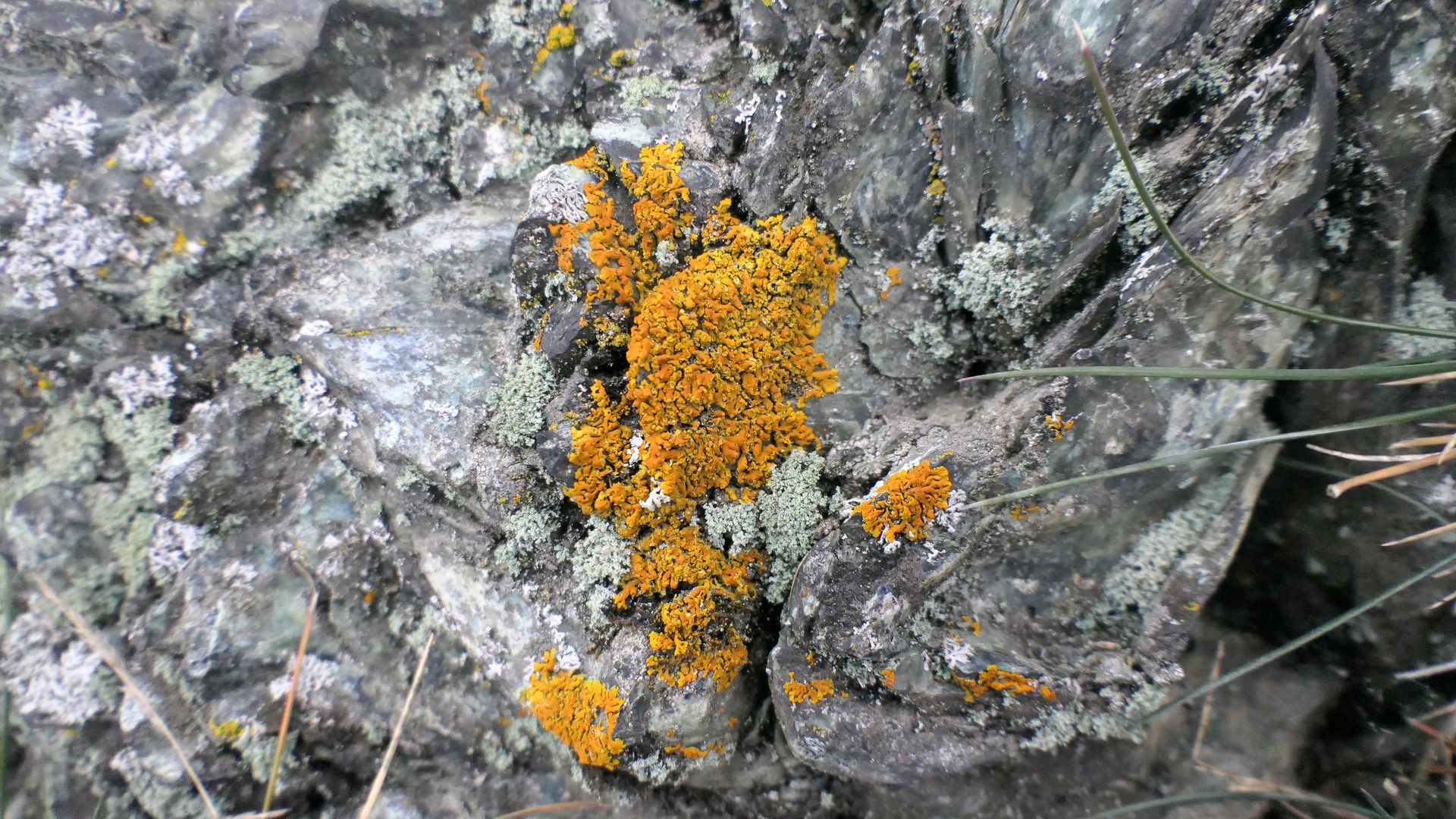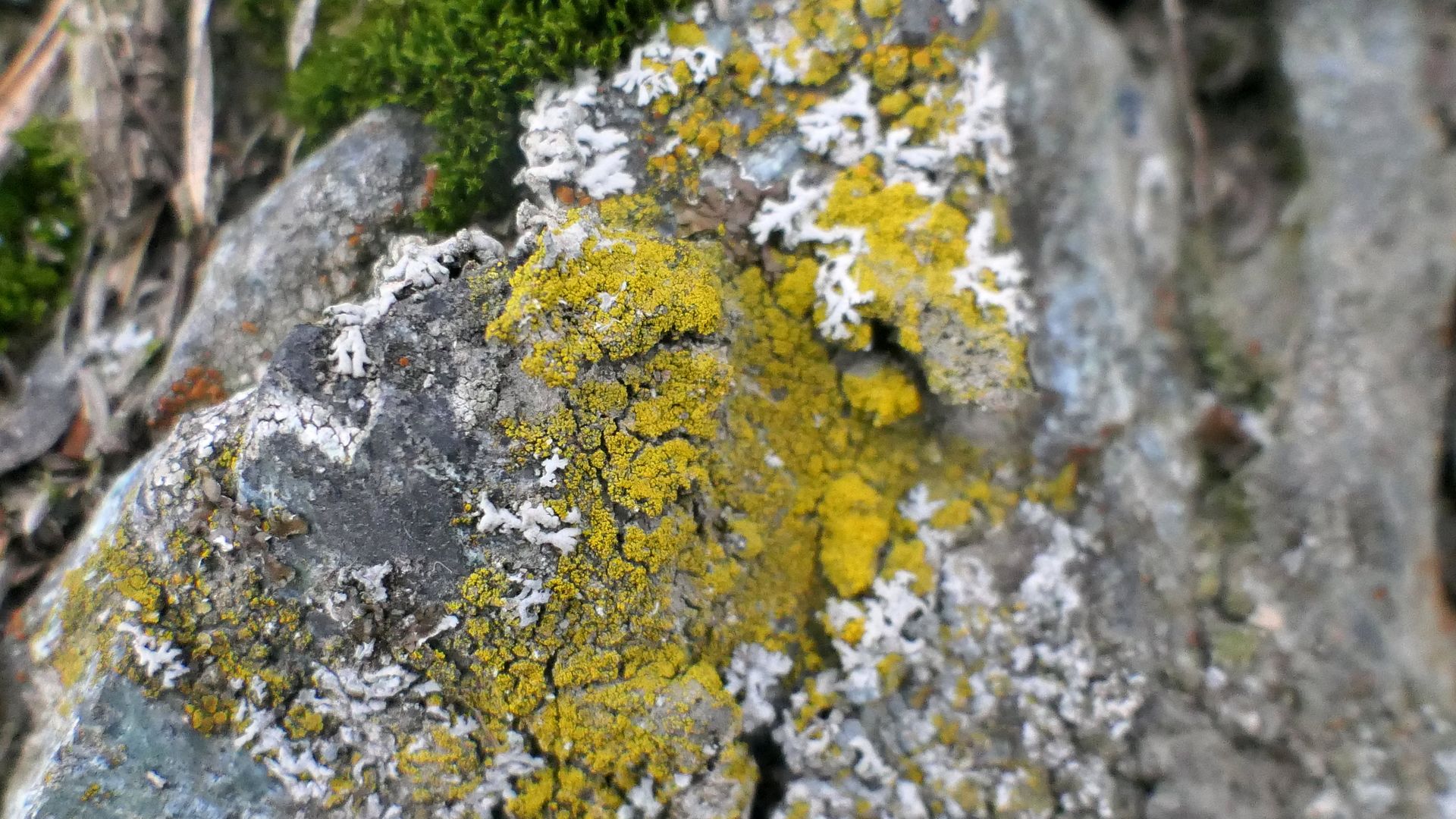 Dafür sind die Felsen dicht mit Flechten überzogen.