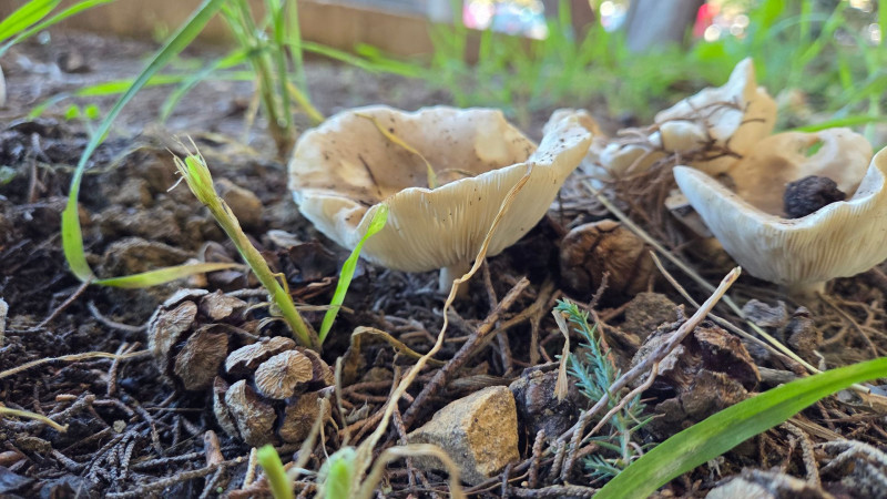 From Malta (Gozo) I encountered this grey mushroom growing in small clumps in a garden-soil in a park under Cypress trees. It is a Clitocybe (Funnel fungus) with a faint sweet-fruity scent, taste mild-mushroom at first than changes to sharp, bitter-acid....