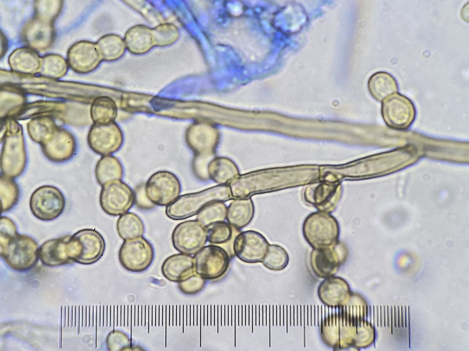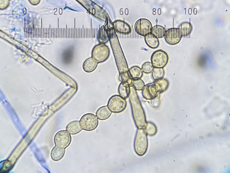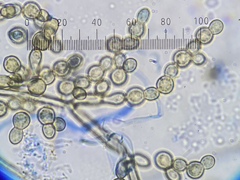 Ich möchte diesen hier unter Cladosporium sphaerospermum abspeichern. Könnte das so gut sein, oder habt Ihr eine andere Idee. Sicherlich hat jemand eine Monographie über Cladosporium oder einen guten Übersichtsartikel dazu. Hier: Isolat von Gras (Poaceae), Konidien ca. 4,5-6 µm.
