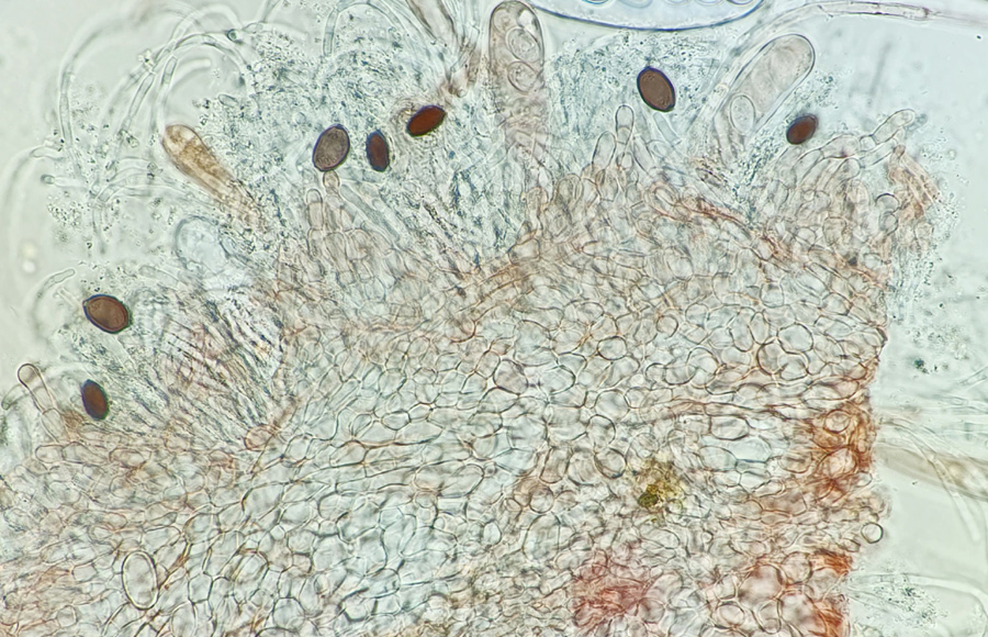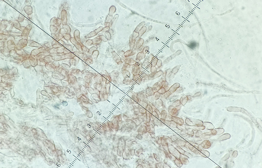 In der oberen Randzone gibt es längliche, kurzgegliederte Zellen. Die Endzellen 8-10 (12) x 4-5 µm groß.