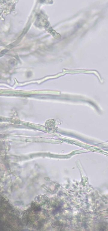 Hier komme ich zu sidera lenis auf picea abies Der fruchtkörper hat wohl sehr gelitten deswegen sehen die sporen wohl erfroren aus lg bis jetzt sollte man auch die rosenkristalle erkennen