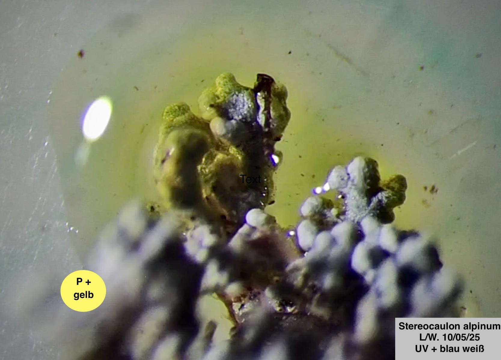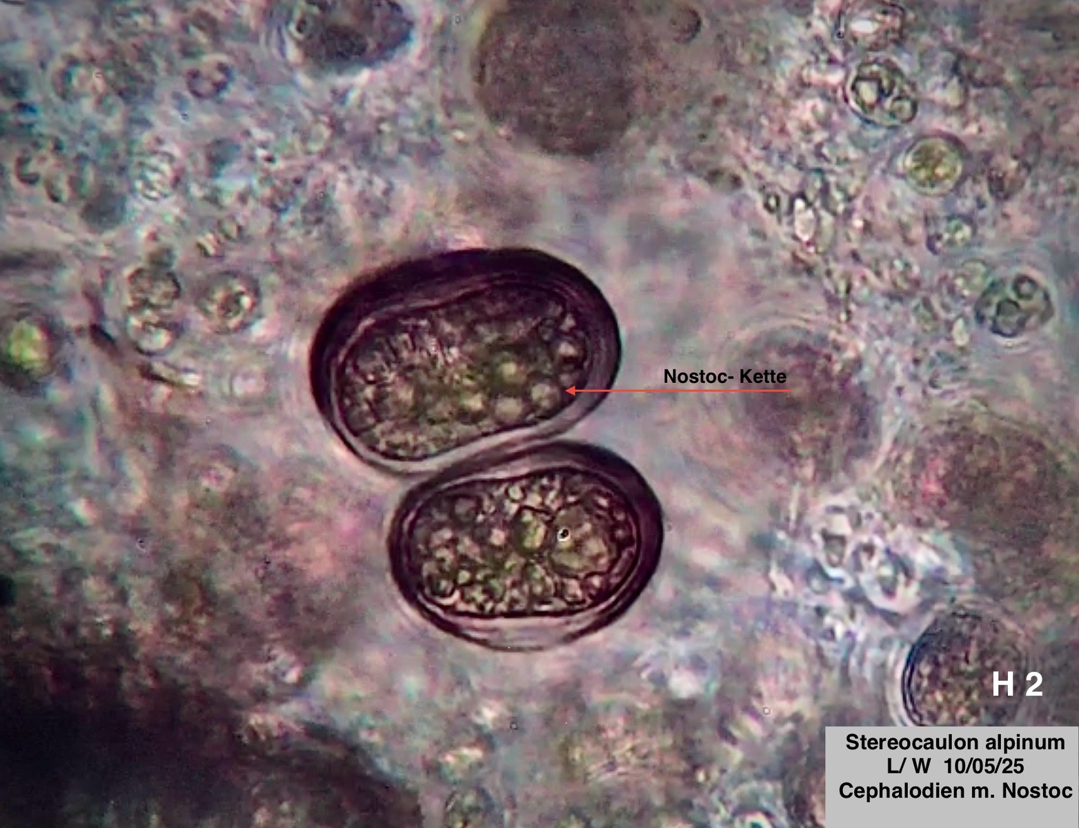 KC+ deutlich violett und somit lt. Literatur P+ gelb ! Nostoc in den Cephalodien.