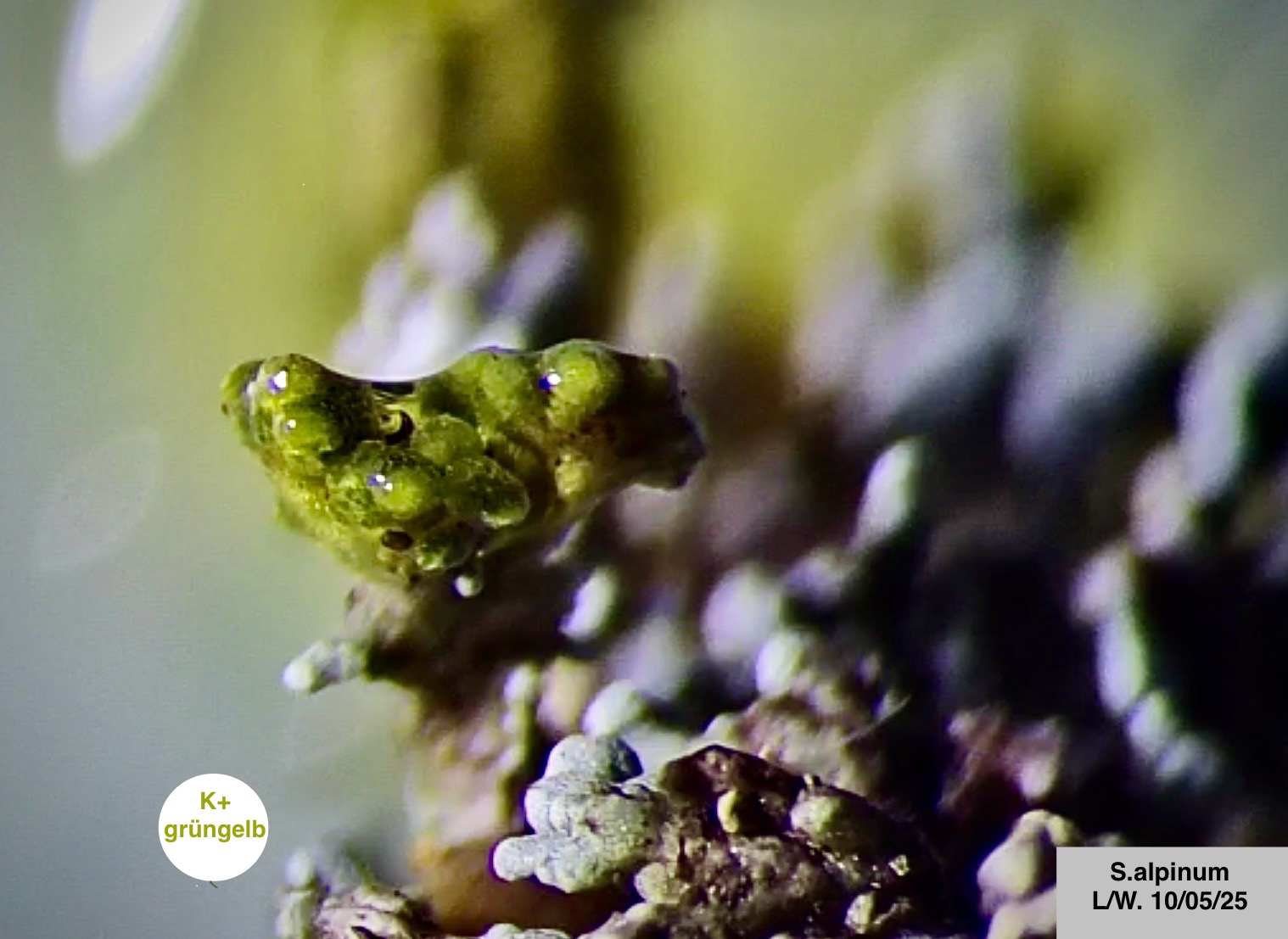 Ich hatte versucht, herauszufinden, ob auch S. dactylophyllum gelegentlich mit Lobarsäure vorkommen kann, konnte aber aber keine Bestätigung hierfür finden. Somit bleibt wohl nur S. alpinum zur Auswahl.