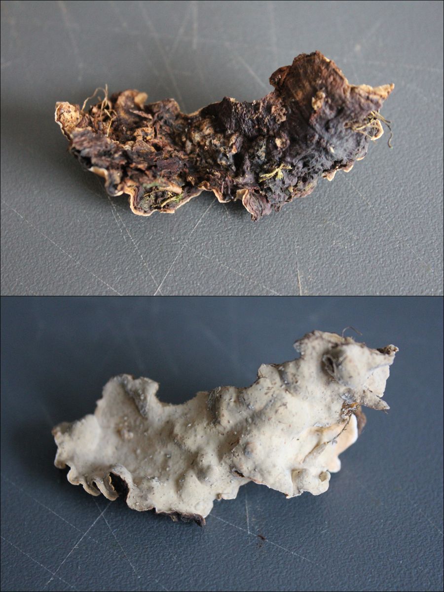 Erfahrungsgemäß ist das m.M.n. ein mehrjähriger Fruchtkörper, und wo die wachsen ist noch eine sehr große Substratfläche vom Pilz bedeckt, wahrscheinlich resupinat an einem Stamm/Stämmchen herablaufend.