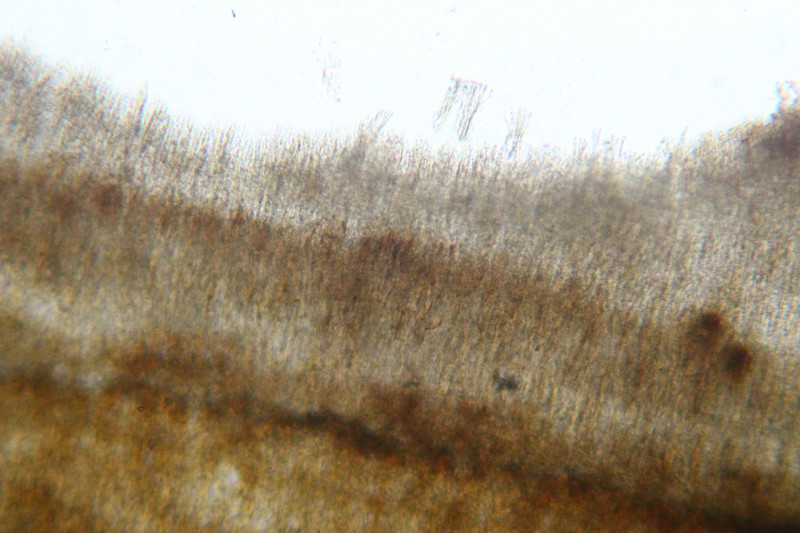 Das Hymenium sieht unauffällig aus und enthält scheinbar keine sterilen Elemente:
