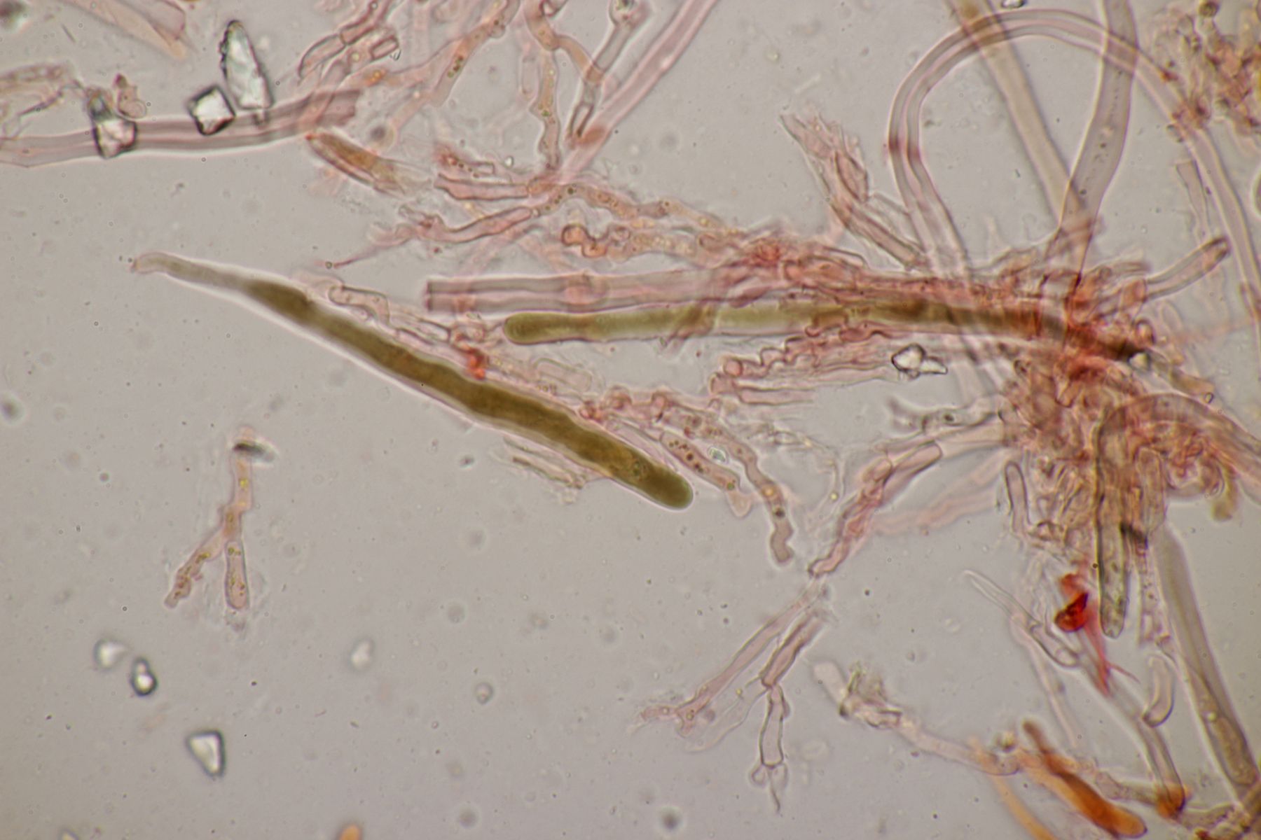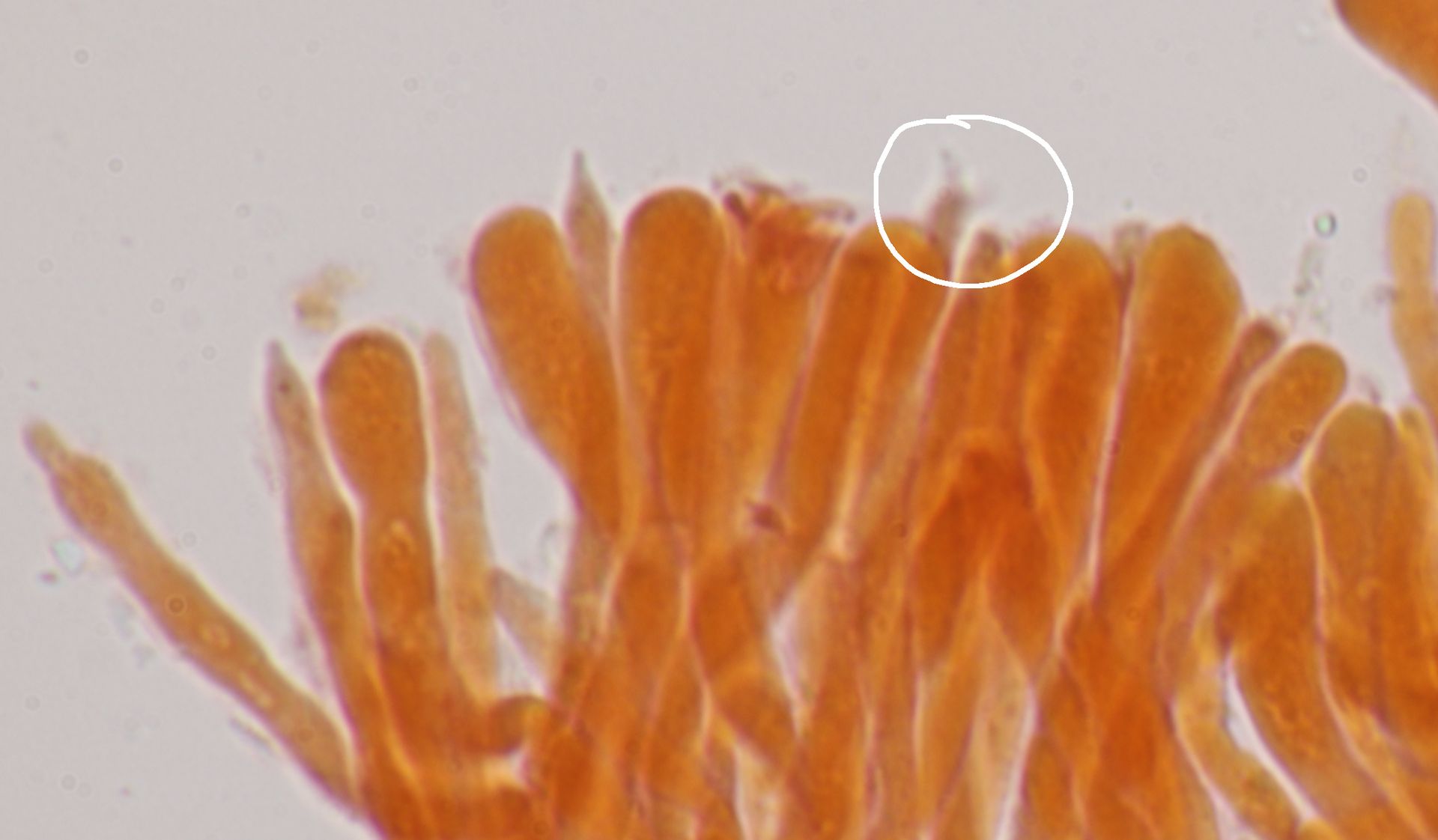Aber zumindest habe ich welche gefunden und kann sie abhaken. Was die Acanthozystiden betrifft, habe ich nur nur ein einziges Bild, das gegebenenfalls eine zeigt: