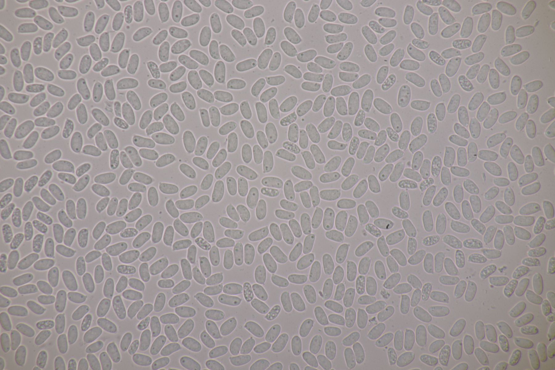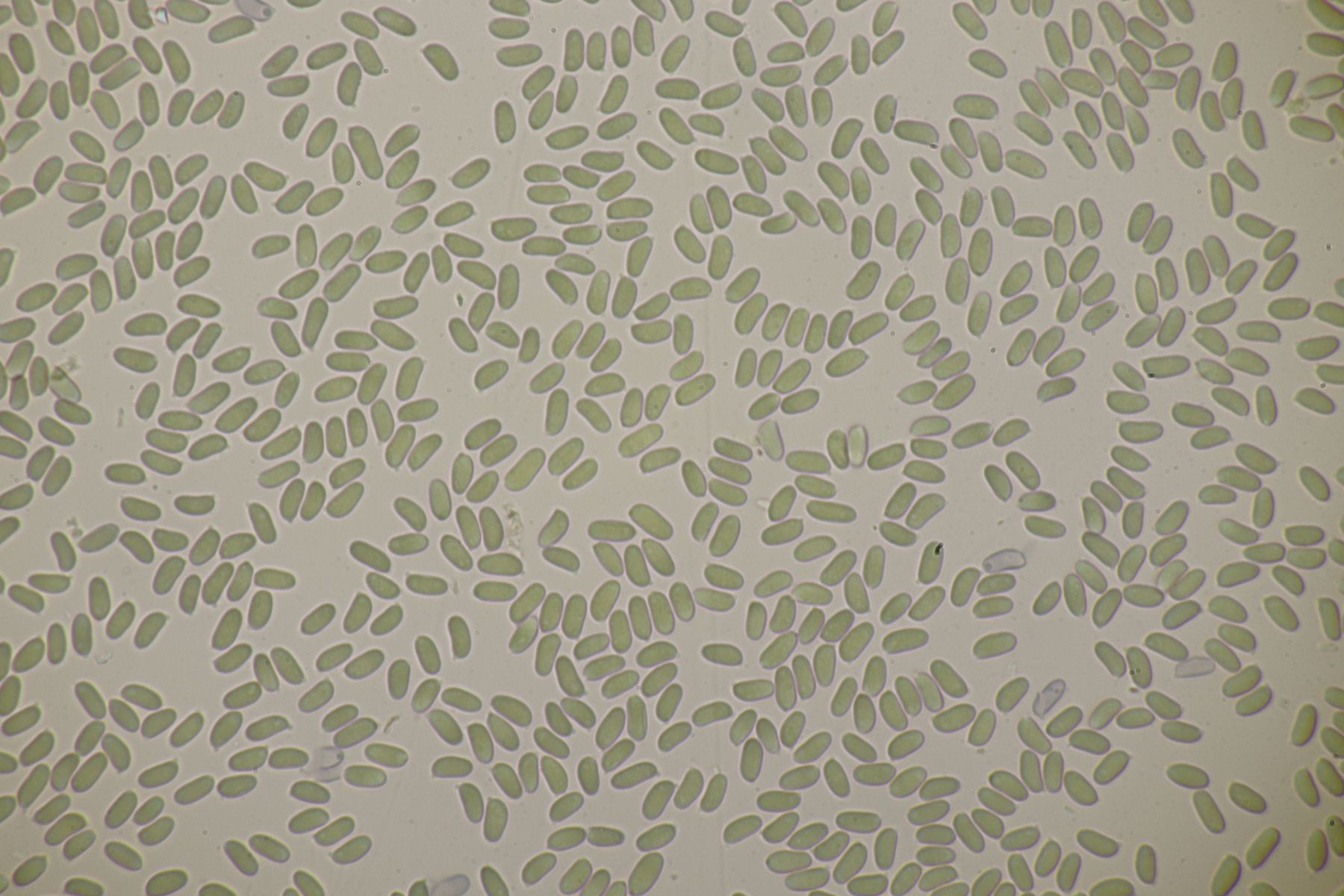 Die Sporen sind ellipsoid und leicht gebogen, dünnwandig, glatt und mit gut erkennbarem Apiculus: