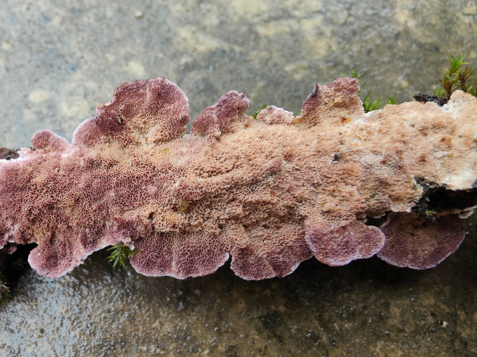 Sieht dem Trichaptum fuscoviolaceum sehr ähnlich aus, beide auf Nadelhölzer. Ich tendiere zu T. abietinum