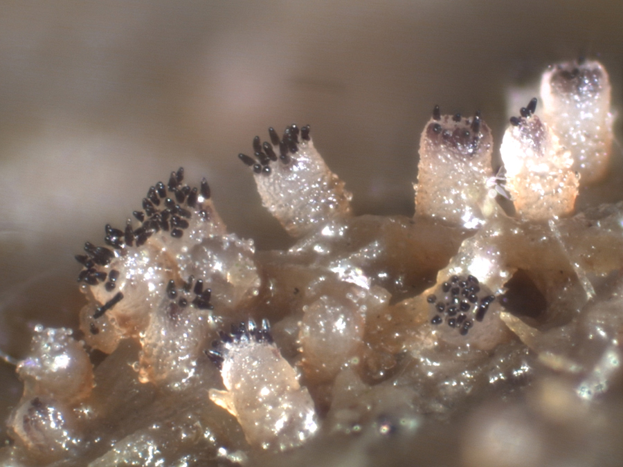 Ich meine auch ein paar gelbliche Apothezien gesehen zu haben, die ich als "alte" Coprotus Arten dann aber nicht unters Mikro getan habe. Sie sind nicht mehr da.
