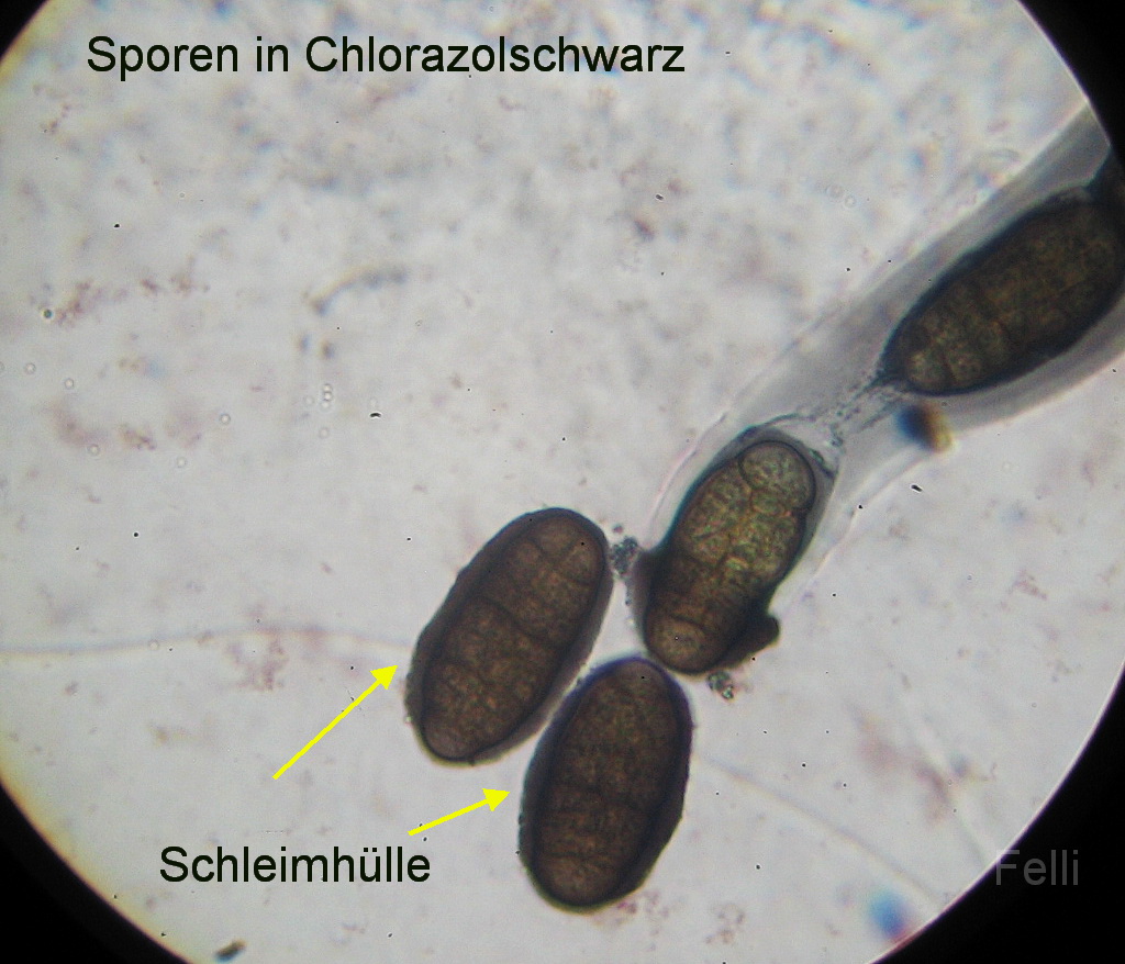 Sporen braun, mit helleren Polen und bis zu 7 Septen