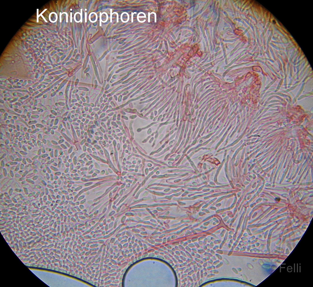 Hier noch in Kongorot die Konidien bildenden Strukturen ( leider ein wenig unscharf)