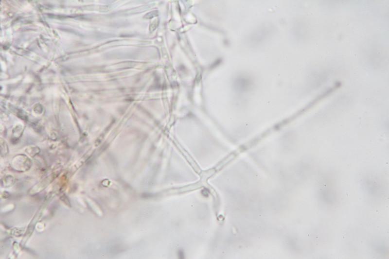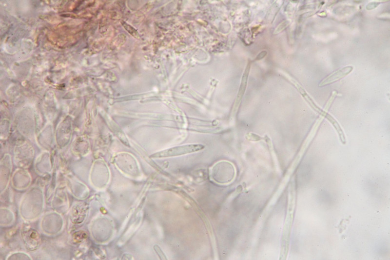 Normalerweise können die Sporen keimen und Konidien bilden, aber das ist hier nicht der Fall.