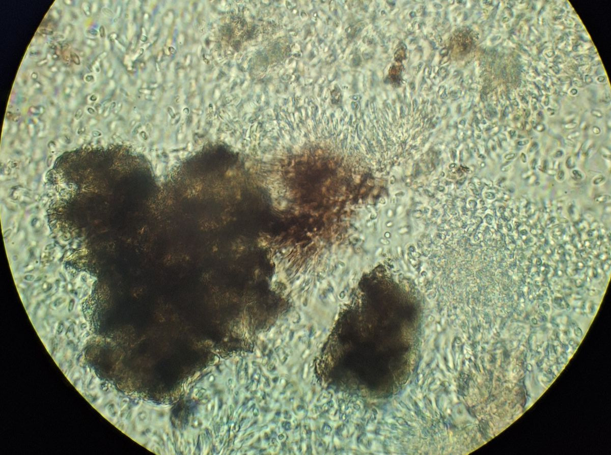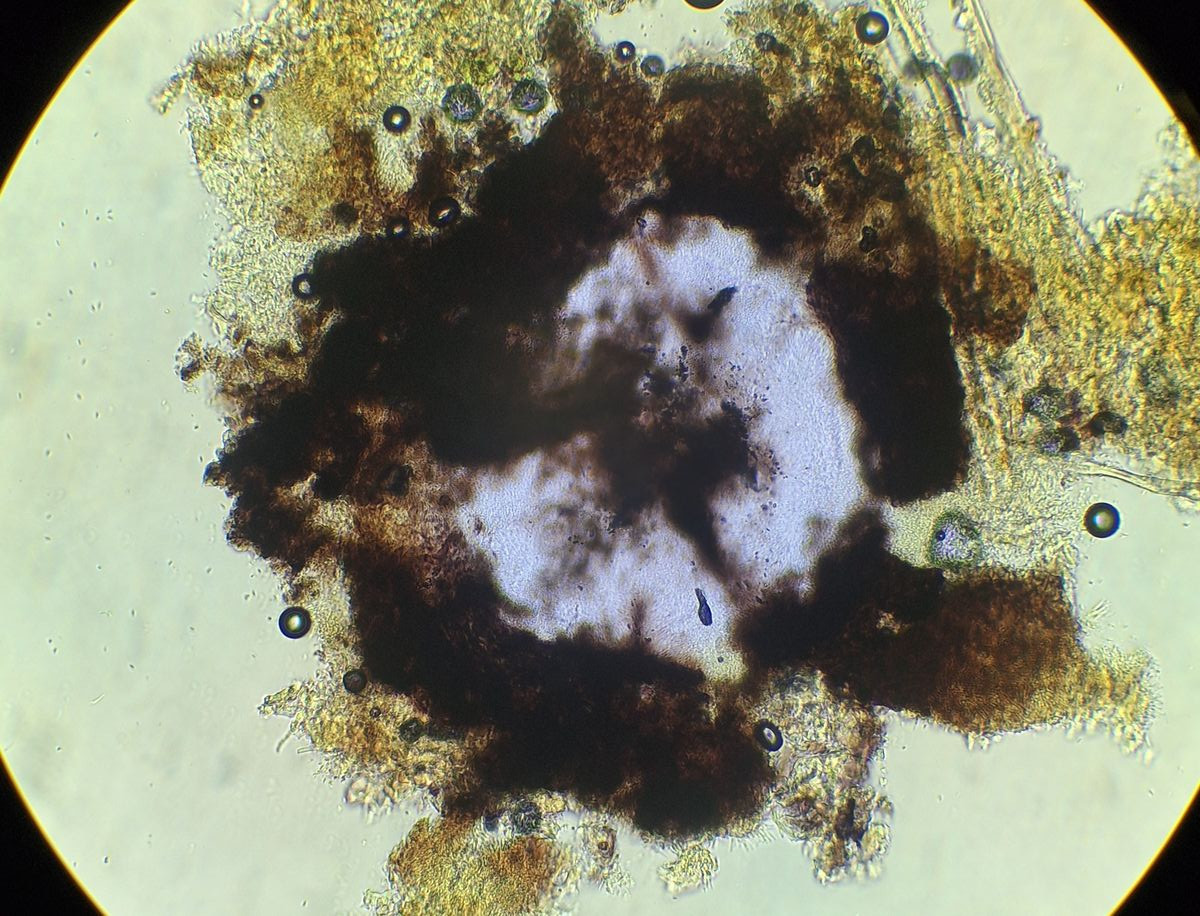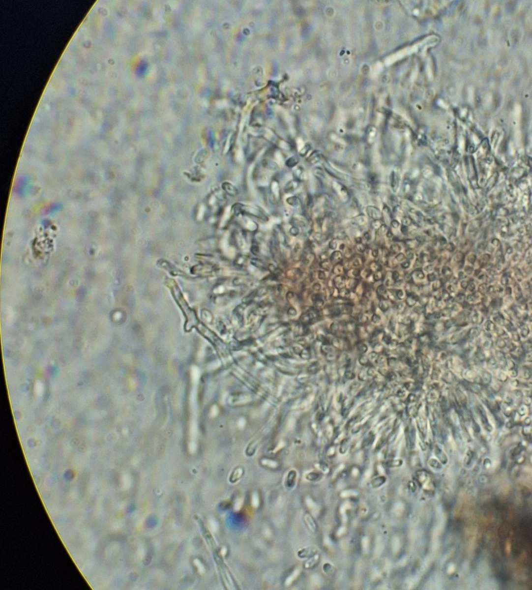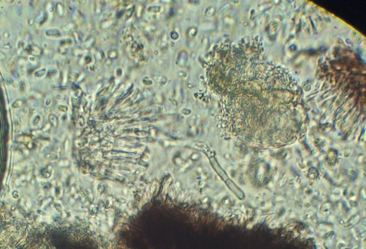 Nach dem Fund der immernoch unidentifizierten ungestielten Stecknadelflechte (Acolium / Cyphelium / Thelomma oder so) habe ich Ausschau gehalten nach weiteren Funden. Insbesondere weil Prof. Wirth, den ich dazu angeschrieben hatte, meinte, dass man auch (Pseudo-)Thelomma ocellatum nicht ausschließen könne, da diese Art neben der sorediösen Form auch im Verhältnis von 100:1 in einer Form mit Apothecien auftritt. Ich solle doch mal die Sporen vergleichen, ob das passt. - Abgesehen davon, dass meine Sporen nicht groß genug sind, auch nach weiteren Proben nicht länger als 19 µm, sollten dann doch auch zahlreicher die sorediösen Formen zu finden sein. Wobei mir nicht klar ist, wie die mikroskopisch aussehen sollen - Mikrobilder, sofern gefunden, zeigen immer die Apothecienform.