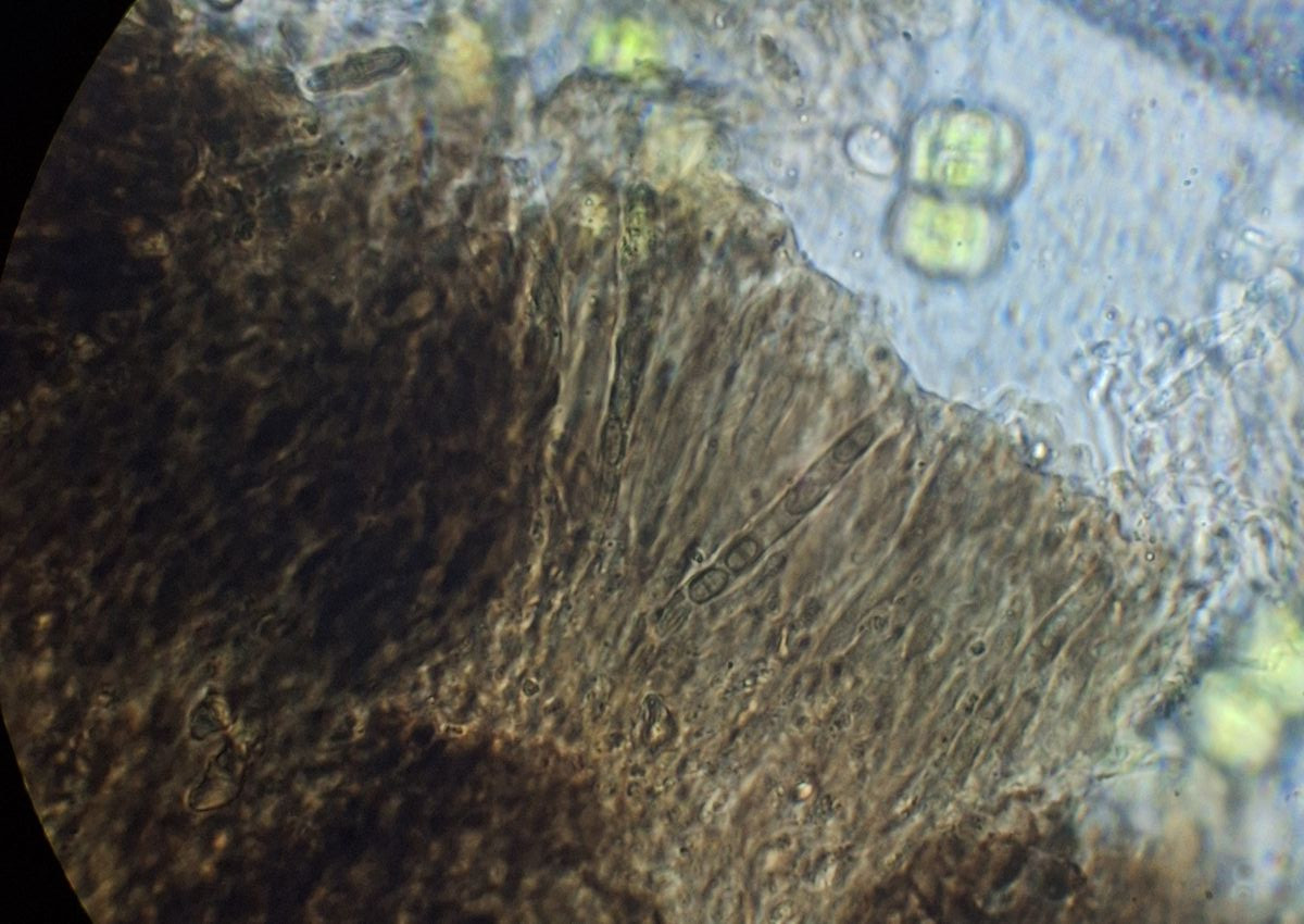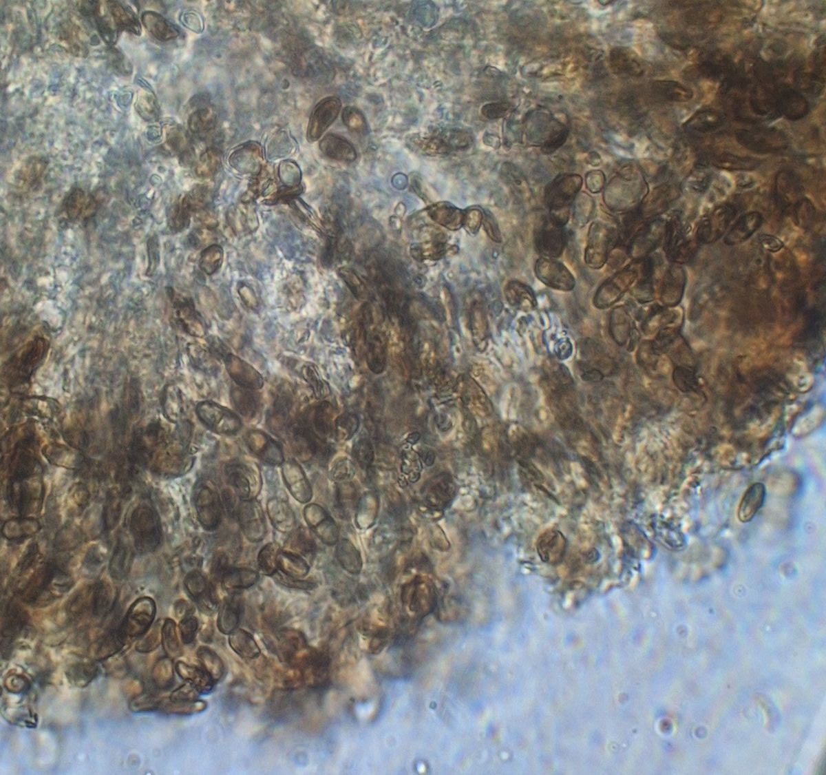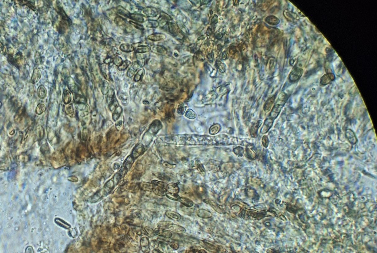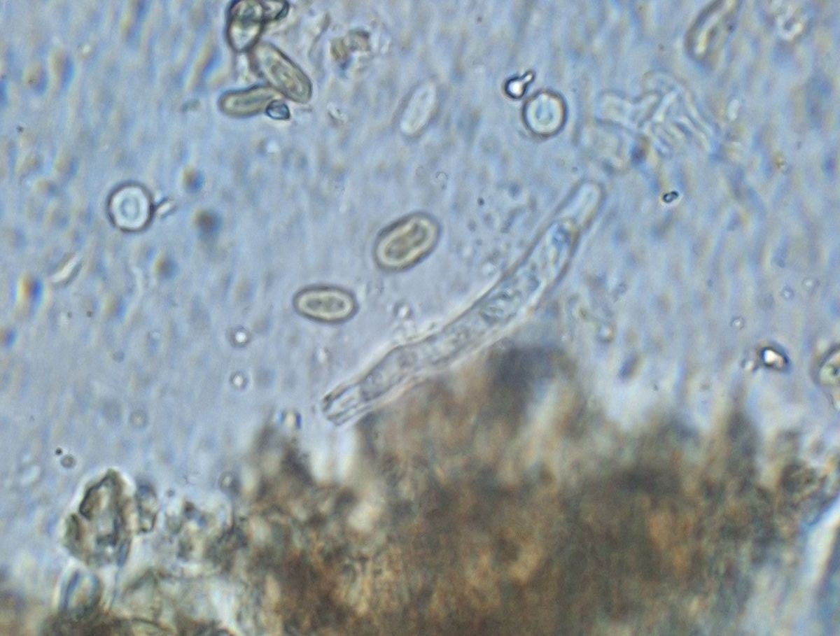Anderes Exemplar in KOH 3%, der hätte wohl mehrköpfig werden wollen. Sah mir wie ein jüngeres Exemplar aus, bei dem ich nicht unbedingt Asci erwartet hätte