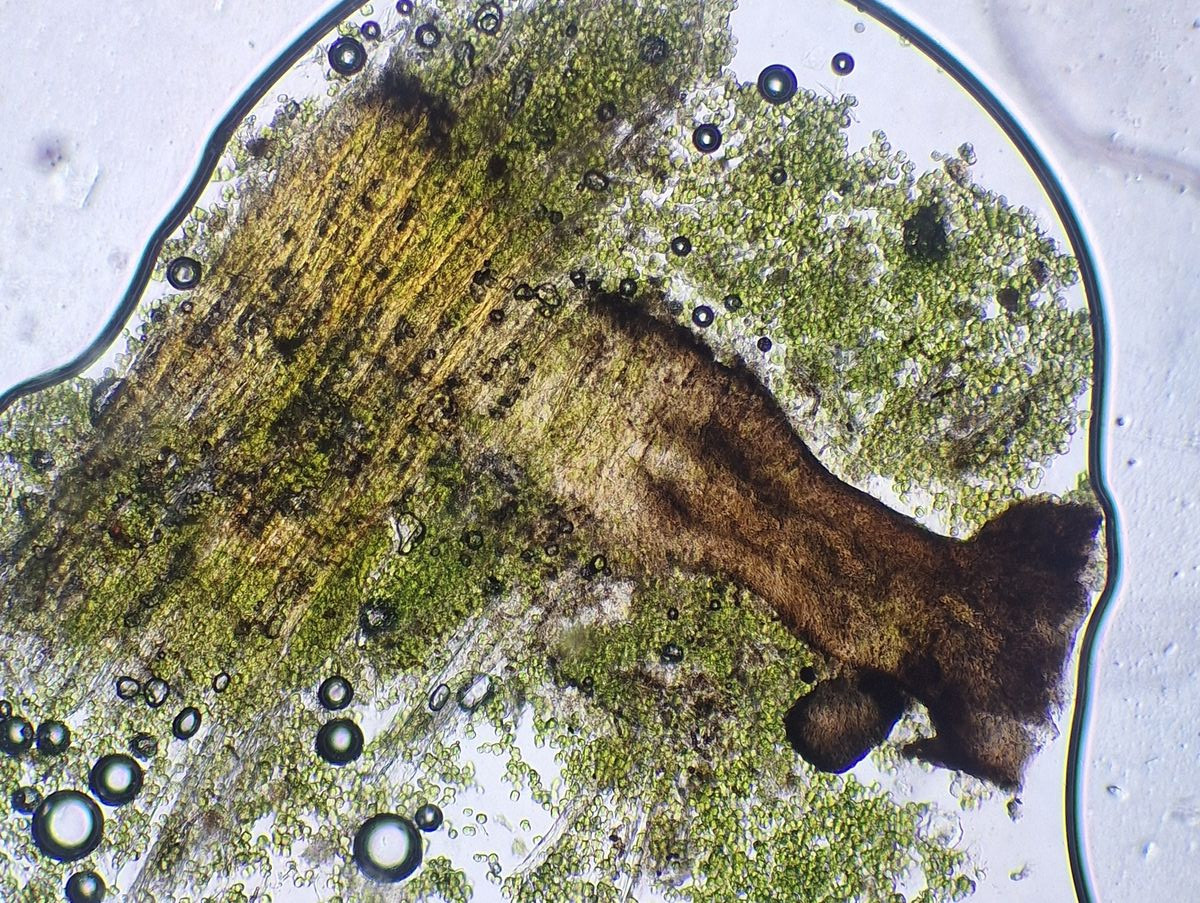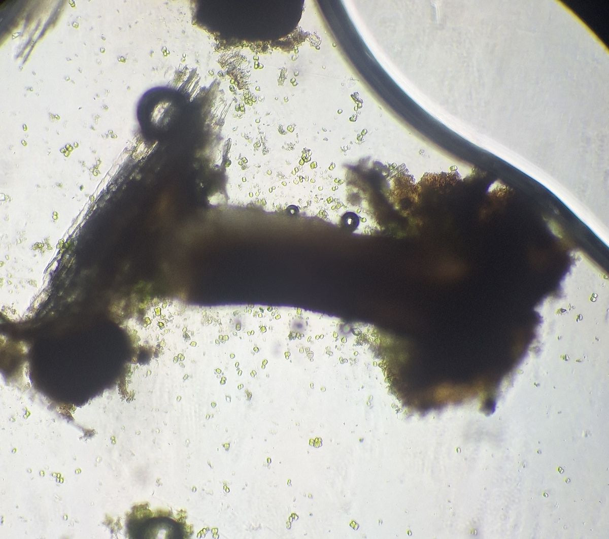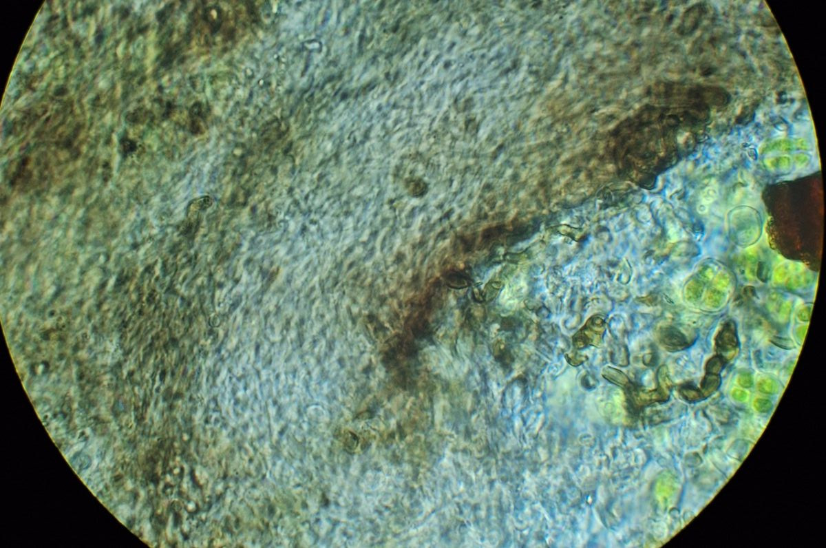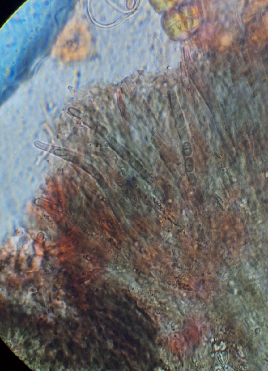 Anderes Exemplar in KOH 3%, der hätte wohl mehrköpfig werden wollen. Sah mir wie ein jüngeres Exemplar aus, bei dem ich nicht unbedingt Asci erwartet hätte