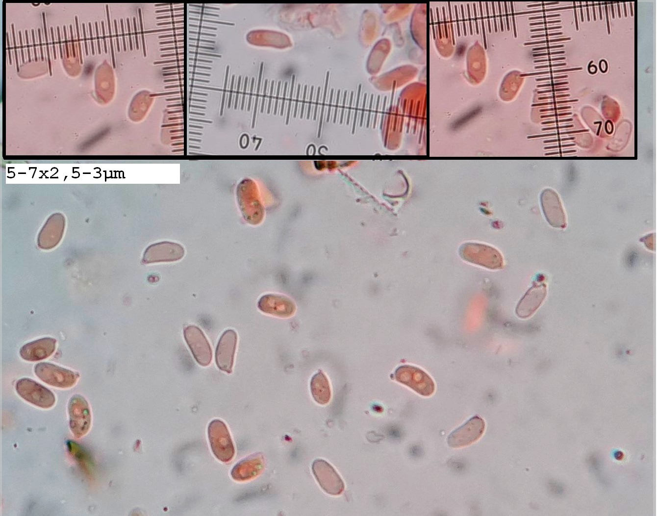 Sp: 5-7x2,5-3µm, J-, elliptisch bis zylindrisch, einige schwach gekrümmt, oft mit einer geraden Seite.