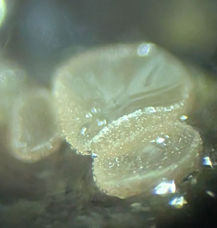 Vielleicht geht es bei dir in die Richtung Cistella, aber da musst du halt schauen, ob Haare vorhanden sind, Haken am Ascus sind und wie die Jod-Reaktion des Ascus (IKI+ ist gleich blaufärbung des Asci) ist.