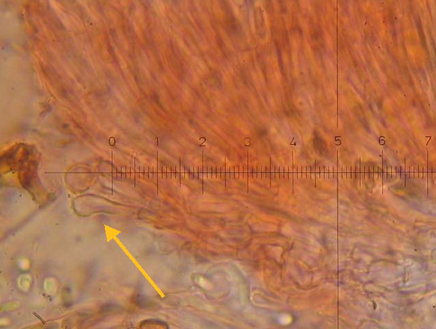 Dann schau doch mal ob du am Rand-außen leicht keulige, 15-25x5-7µ lange, dickwandige, und am Kopf (apikal) leicht stachlig/warzige Haare entdeckst.