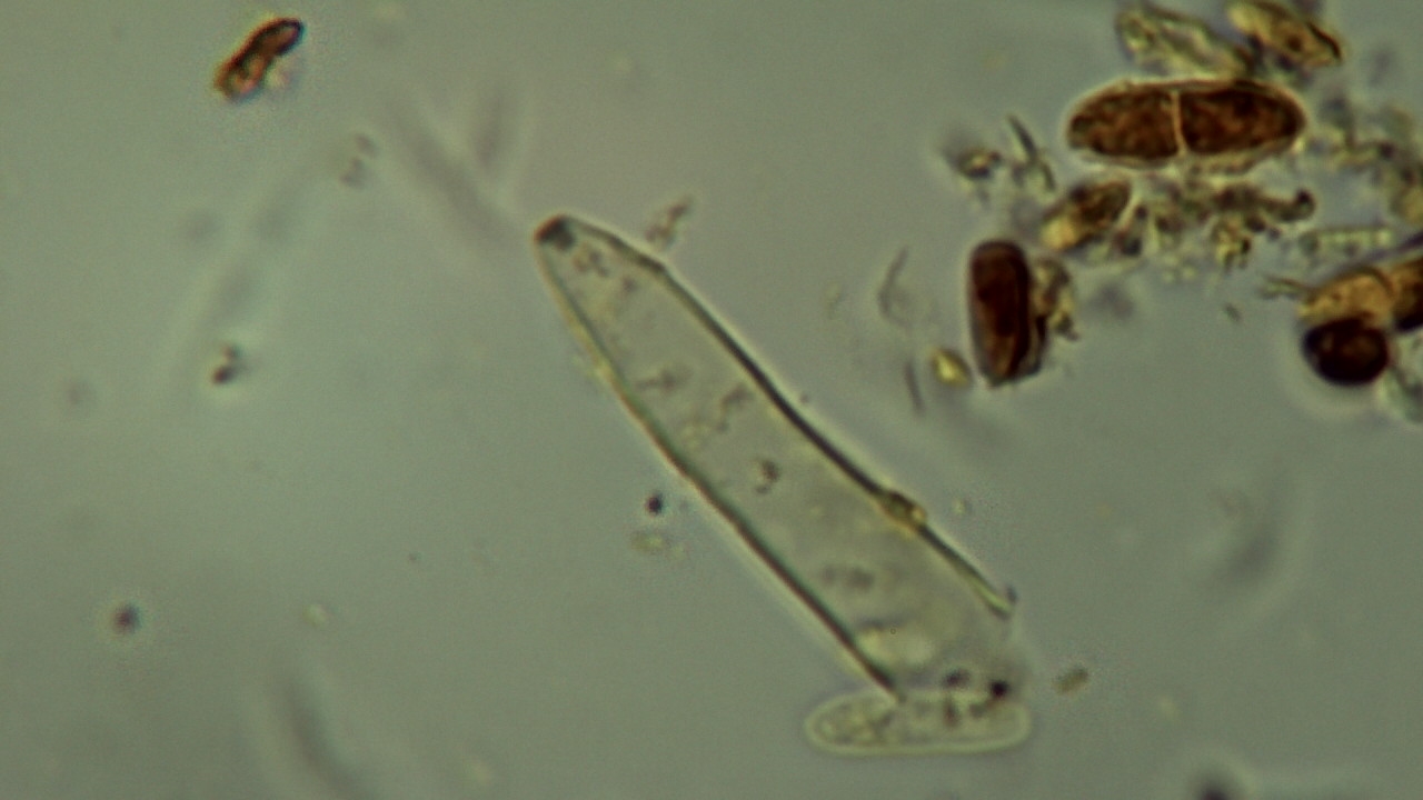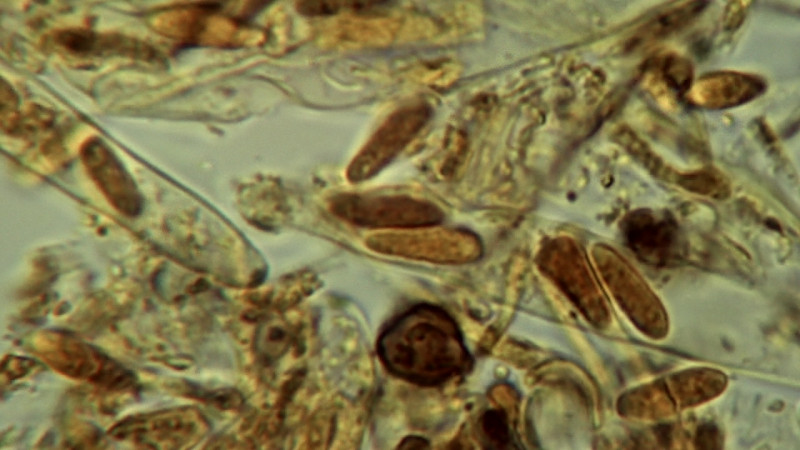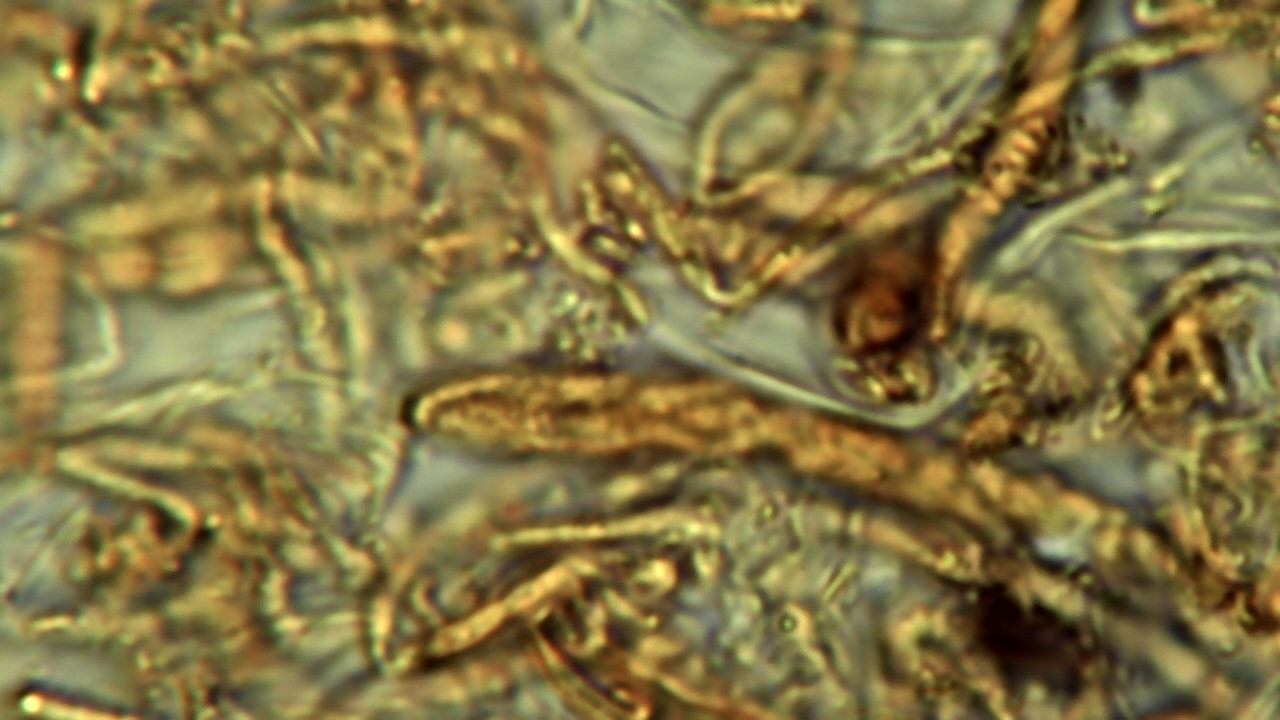 Dann schau doch mal ob du am Rand-außen leicht keulige, 15-25x5-7µ lange, dickwandige, und am Kopf (apikal) leicht stachlig/warzige Haare entdeckst.