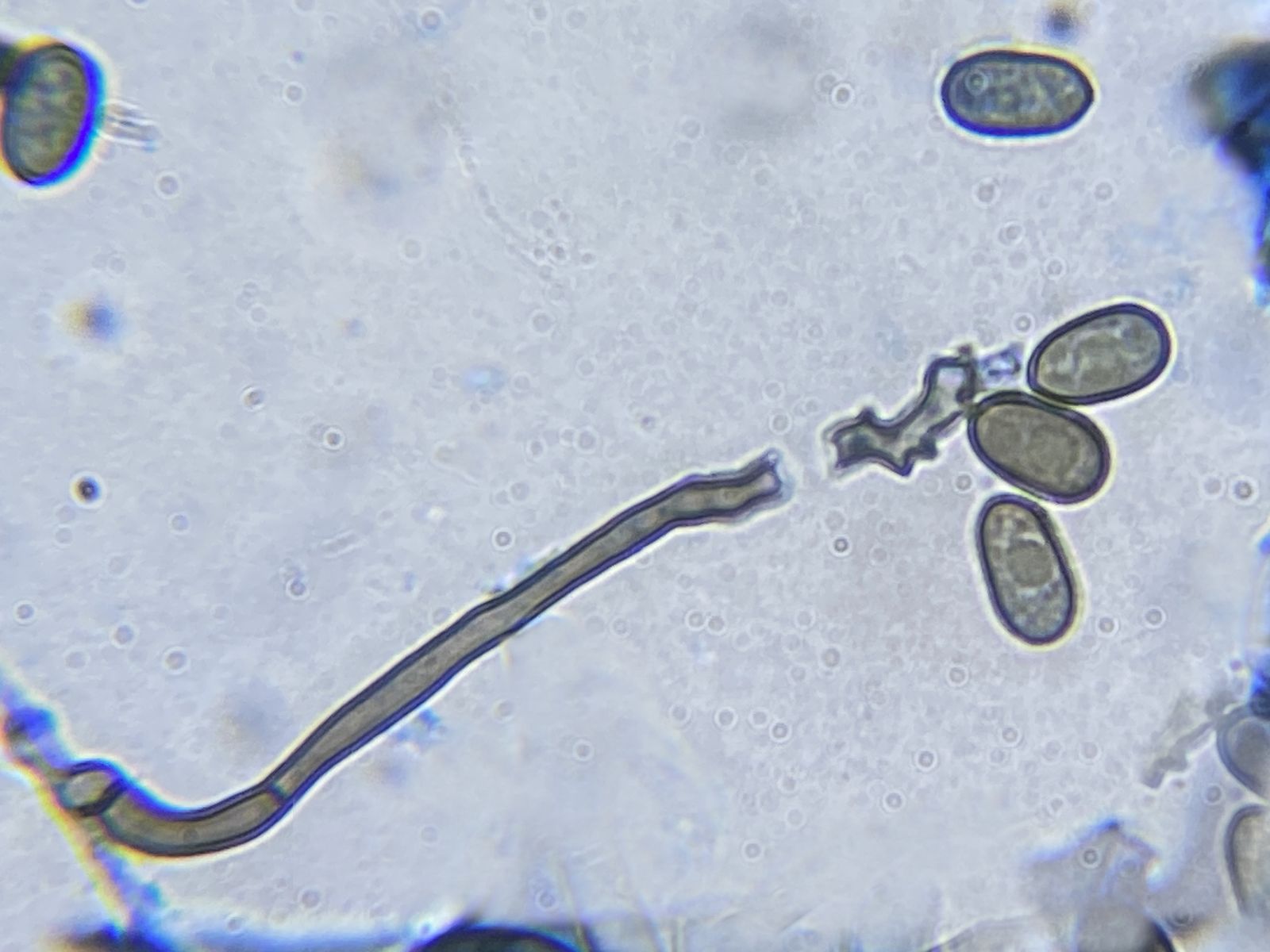 4) unbestimmt (~Cladosporium sp.) (Konidien ca. 10 x 6 µm)
