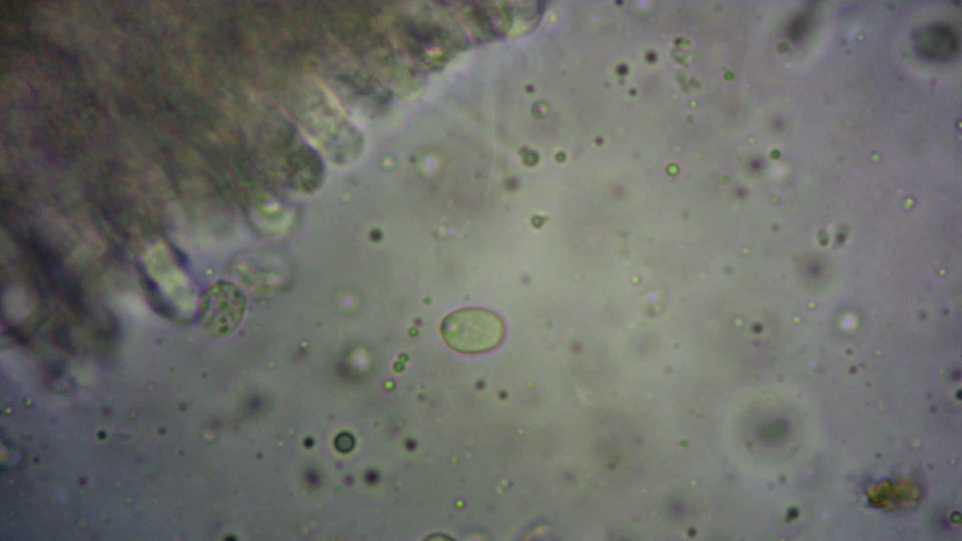 Wir haben versucht, einen Sporenabwurf zu machen, leider war dieser aber erfolglos. Der Pilz war ohnehin ziemlich jung, sodass wir nur wenige Sporen im Präparat gefunden haben:
