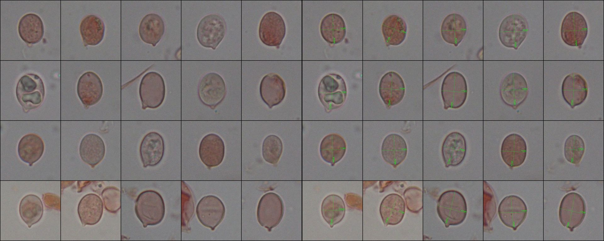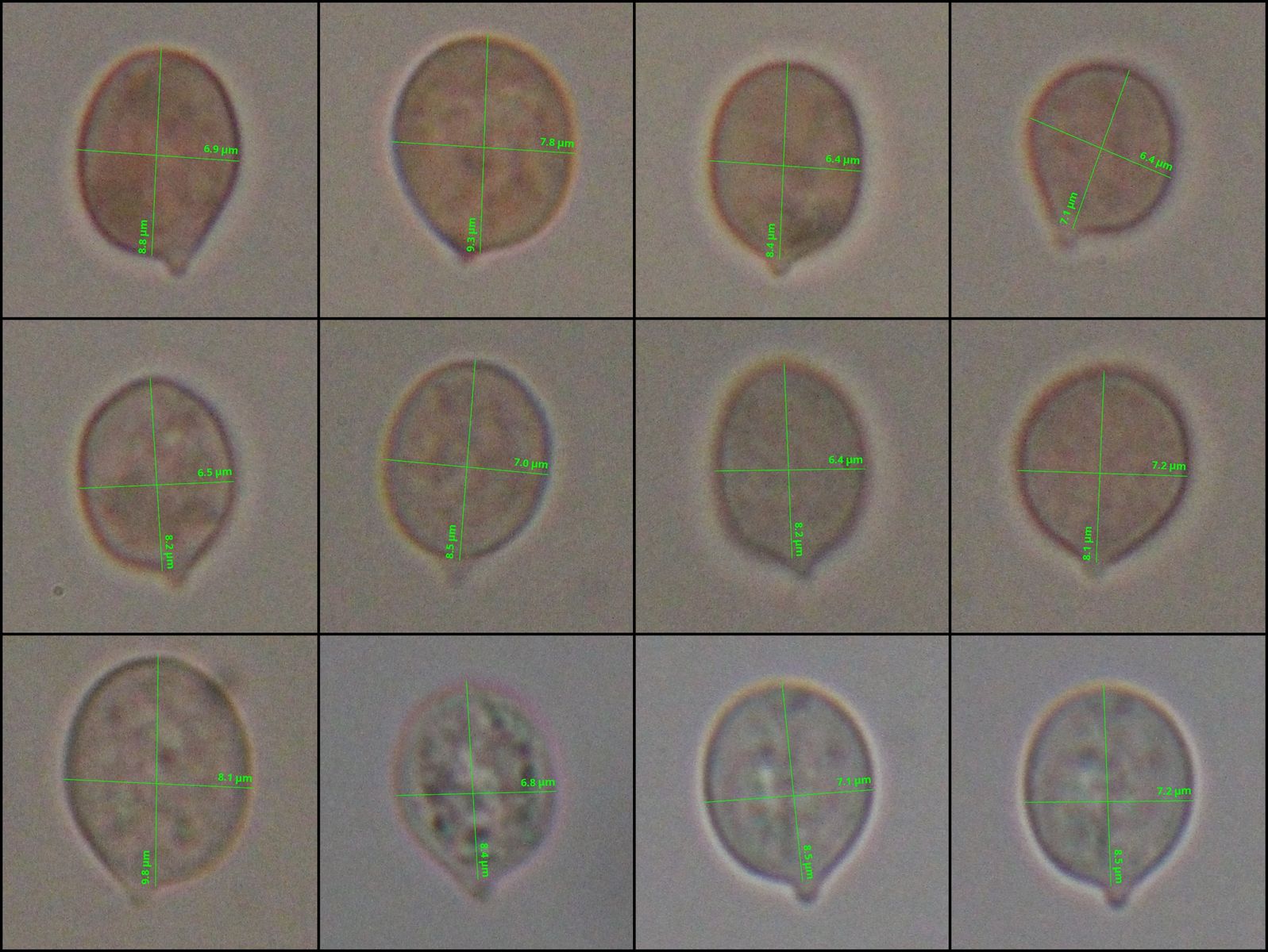 Ich habe noch einmal im Präparat gesucht und 20 weitere Sporen zusammengekratzt: