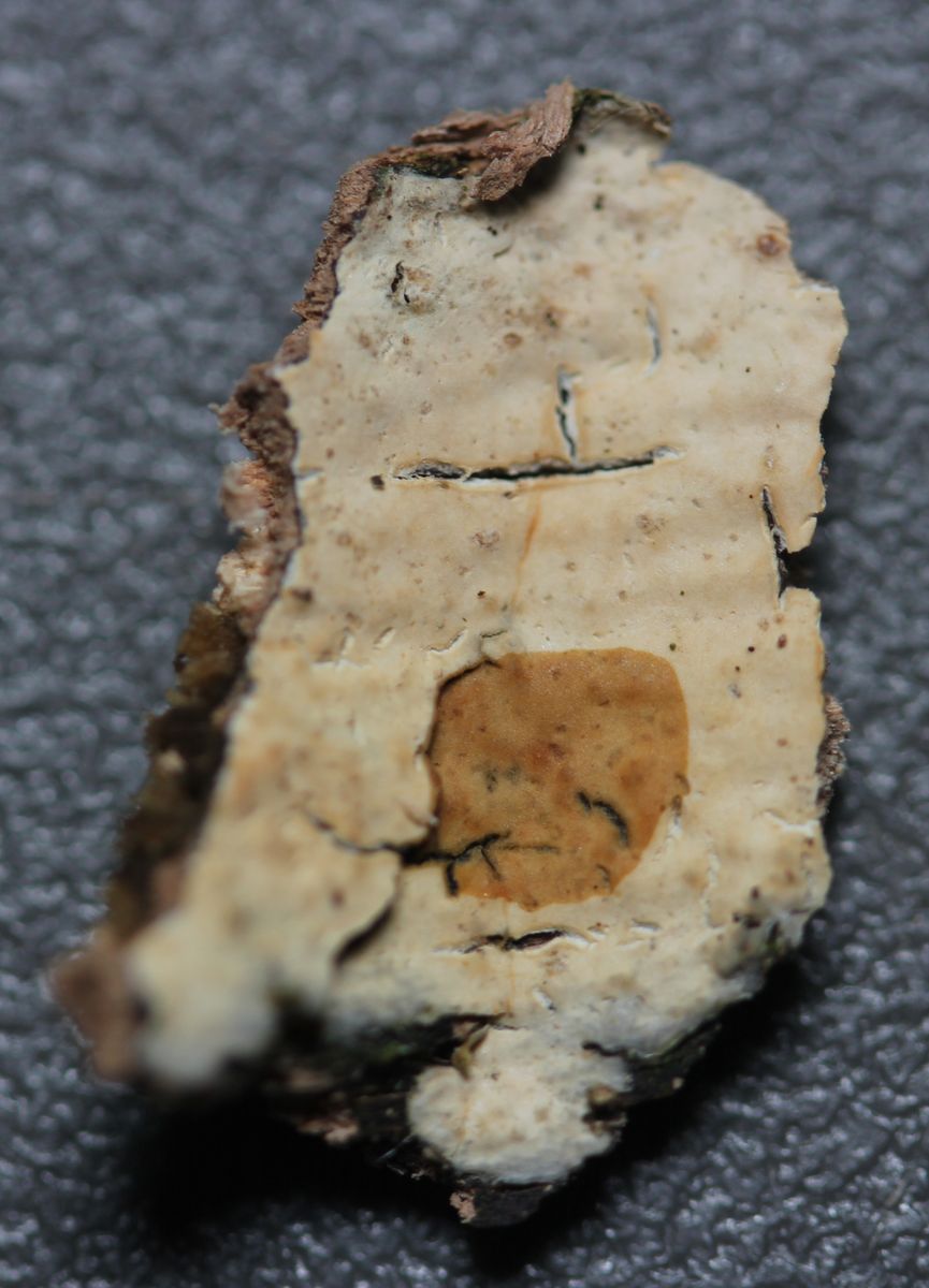 Das Substrat ist für mich nach den Fotos klar eine Buche. Die Querstreifen kommen davon, dass die Borke spröde wurde. Die Lentizellen von Prunus sehen deutlich anders aus ( Maronisto).