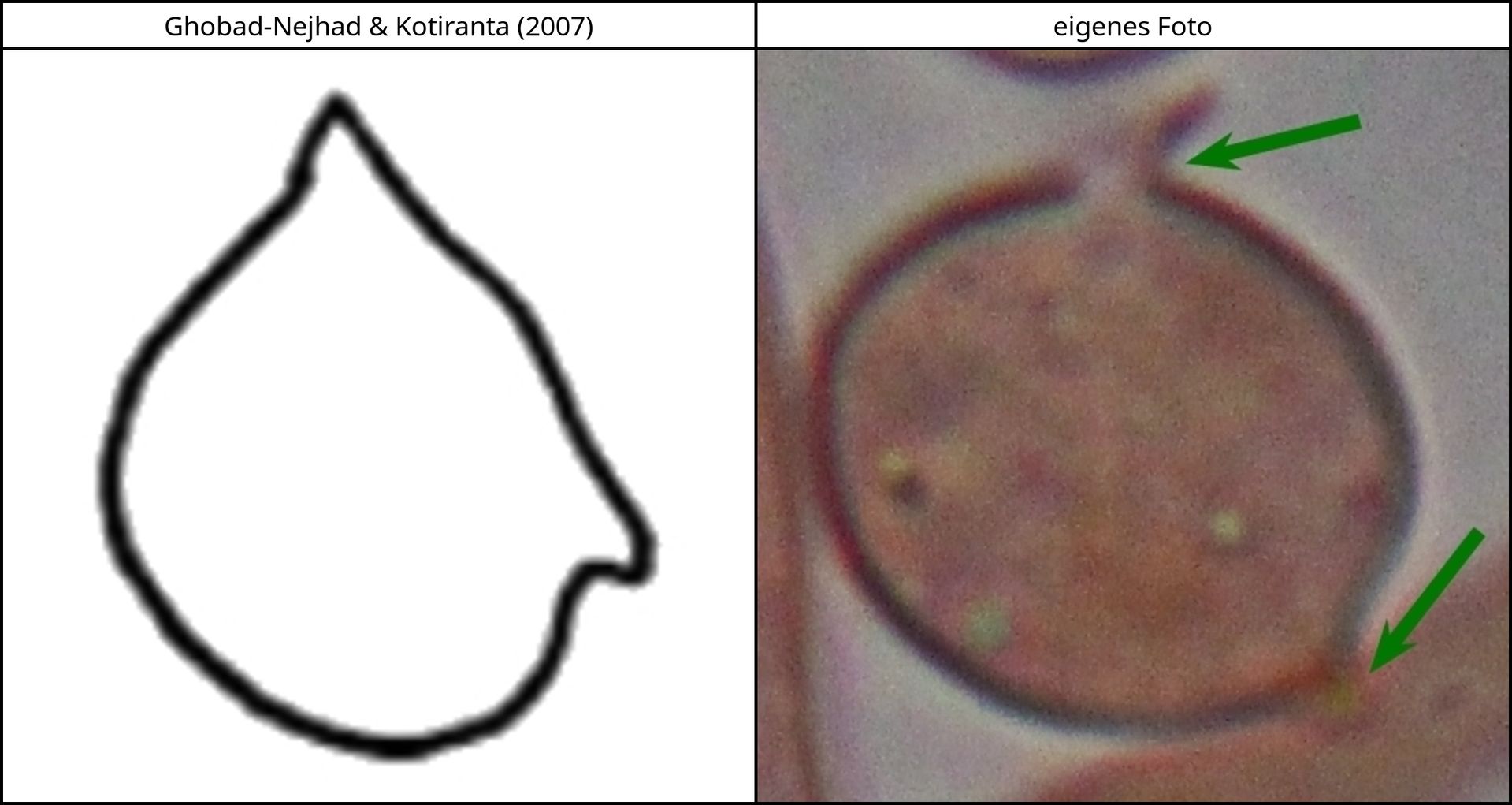 Die Sporenmaße sind hiermit sehr nah an den 12 anderen Sporen, die ich oben vorgestellt habe. Hier ein direkter Vergleich mit den Maßen von Ghobad-Nejhad & Kotiranta, 2007, p. 102:
