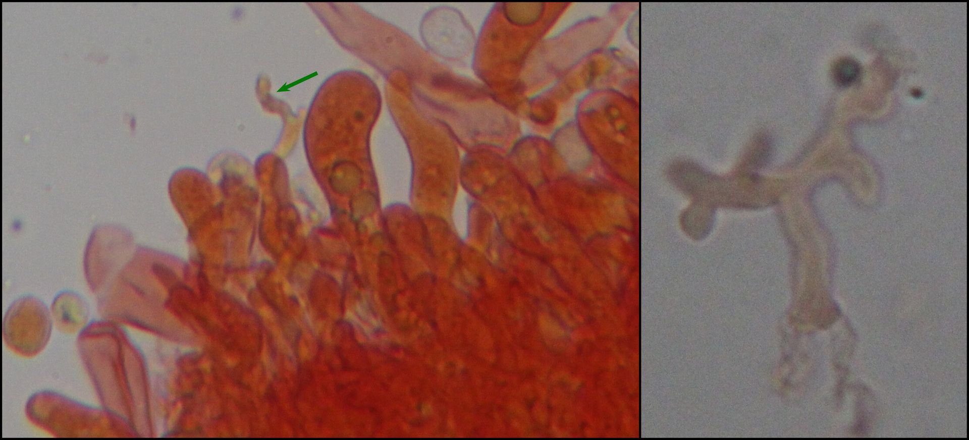 Zudem haben wir unzählige Strukturen gefunden, die wir für Basidiolen halten; sie besitzen keine Basalschnalle: