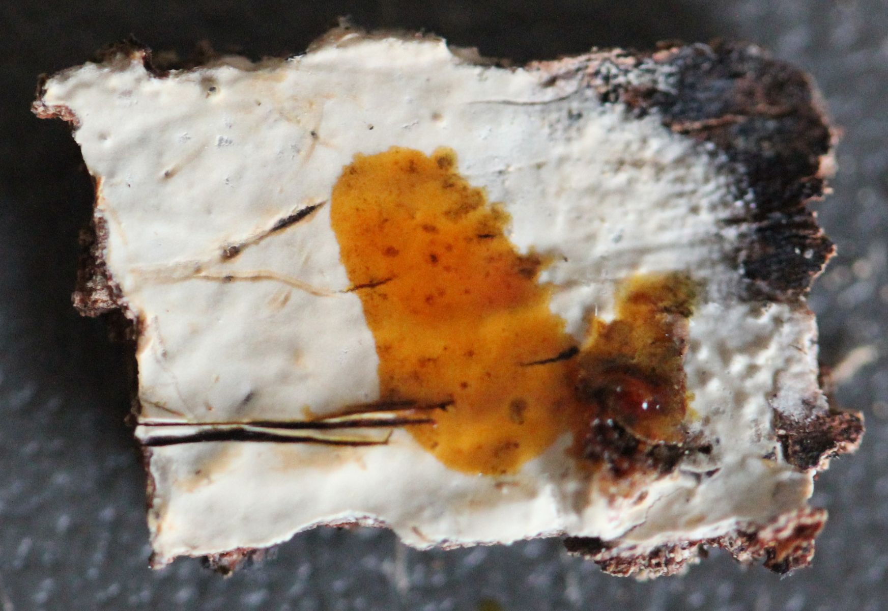 2. Das Hymenium soll sich makroskopisch gelb verfärben, wenn man 3% KOH darauf gibt. Meine Verfärbung ist aber eher bräunlich als gelblich: