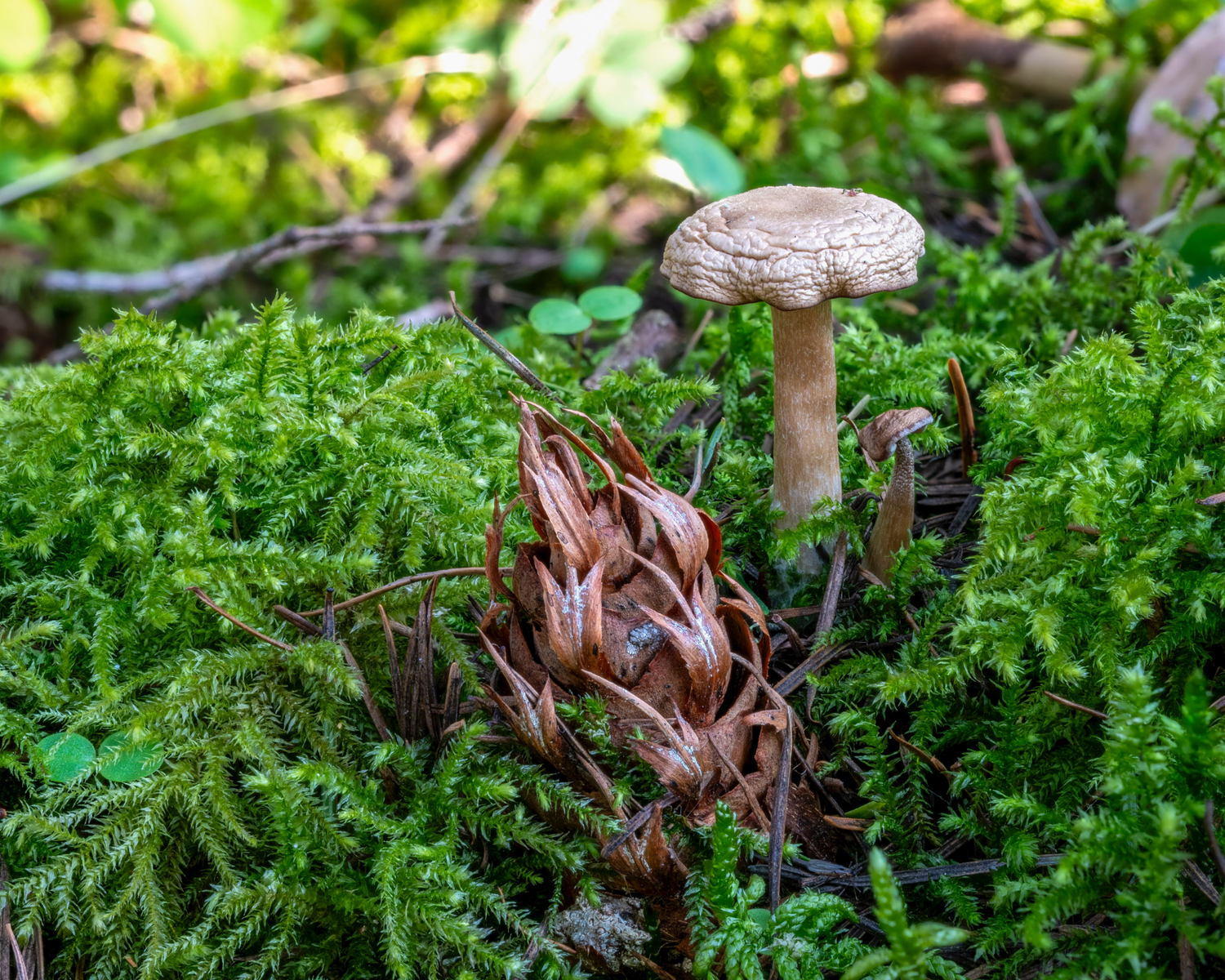 In deiner "Nadelholzecke" wachsen ja, dem Zapfen zufolge, Douglasien. Und in dem moosigen Untergrund könnten doch Ende Oktober / Anfang November