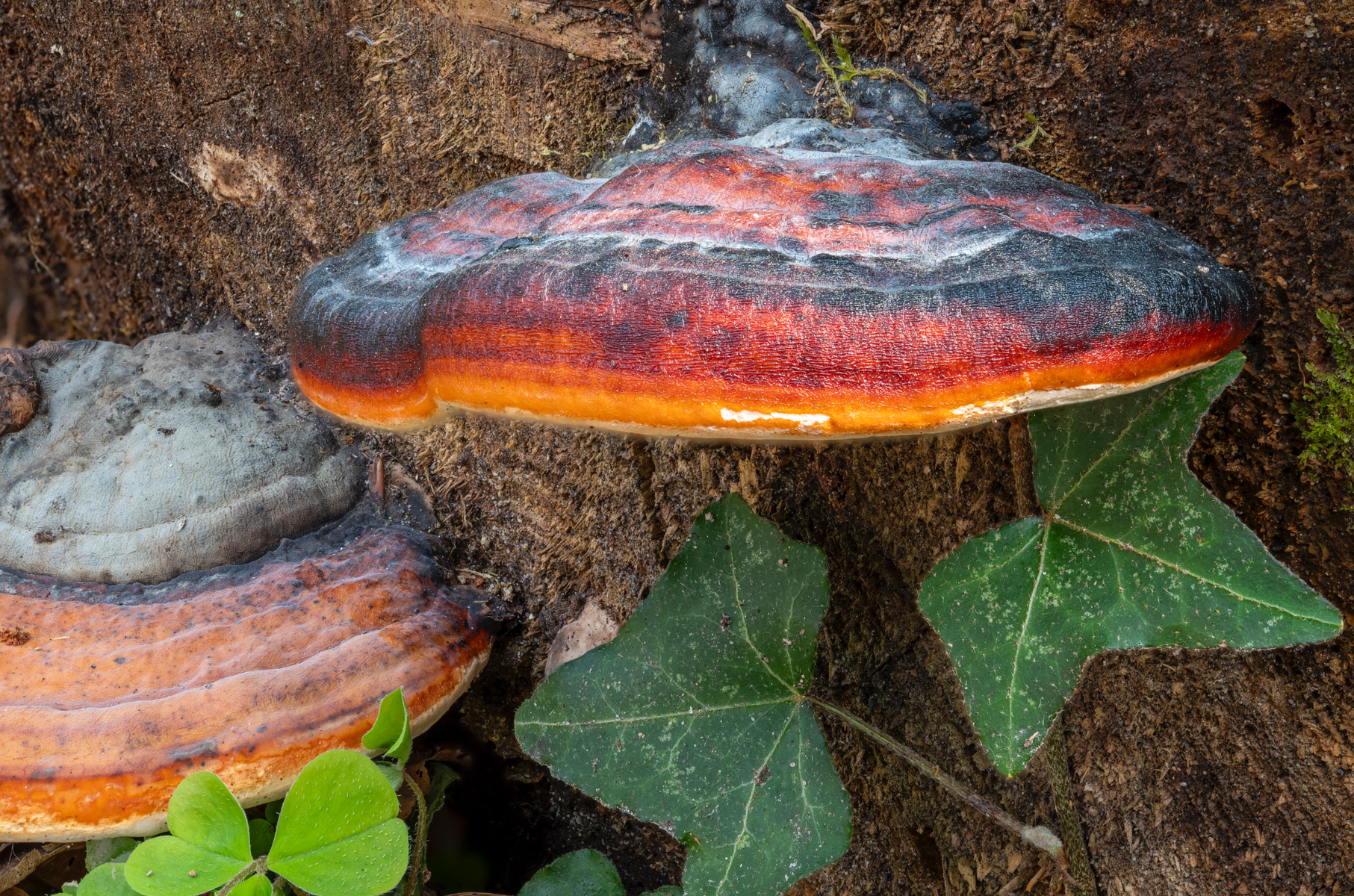 • Noch ein Fund von heute: Den Rotrandigen Baumschwamm (Fomitopsis pinicola) konnte ich selbst bestimmen, so einen hatte ich allerdings bisher in unserer Gegend noch nicht gesehen. Bezüglich solcher Baumpilze haben wir extrem viele Schichtpilze hier ums Dorf herum, viele Buckeltrameten und Zunderschwämme.