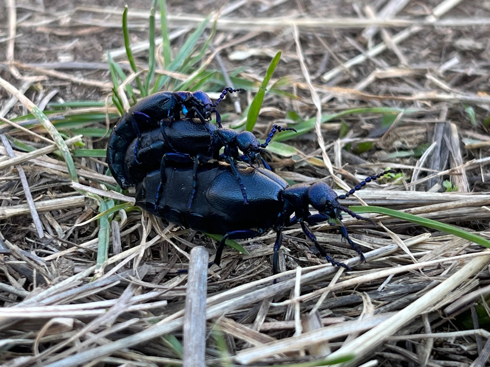 Ölkäfer sind nicht sehr häufig. In Deutschland sind alle Arten streng geschützt. Vorgestern konnte ich mehrere Violette Ölkäfer - Meloe violaceus beobachten in - diplomatisch formuliert - recht ungewöhnlichen Konstellationen. Sie und ihre ungewöhnliche Biologie will ich euch hier einmal beschreiben.
