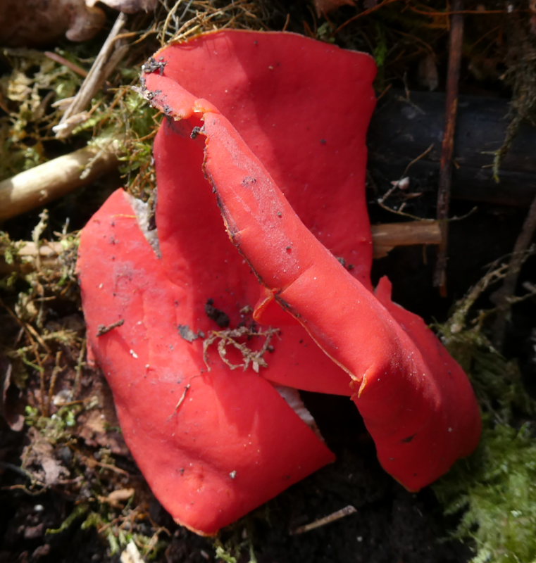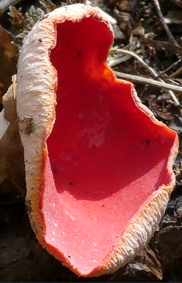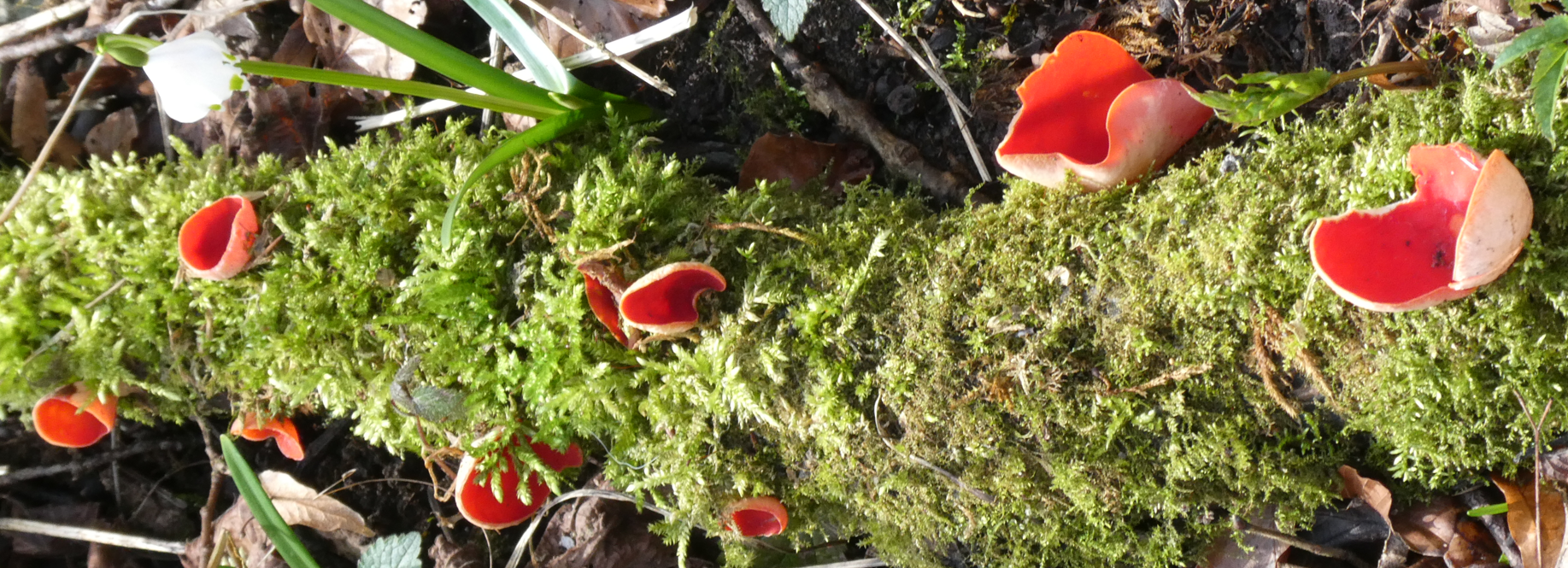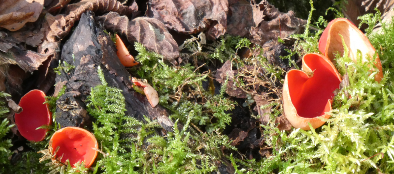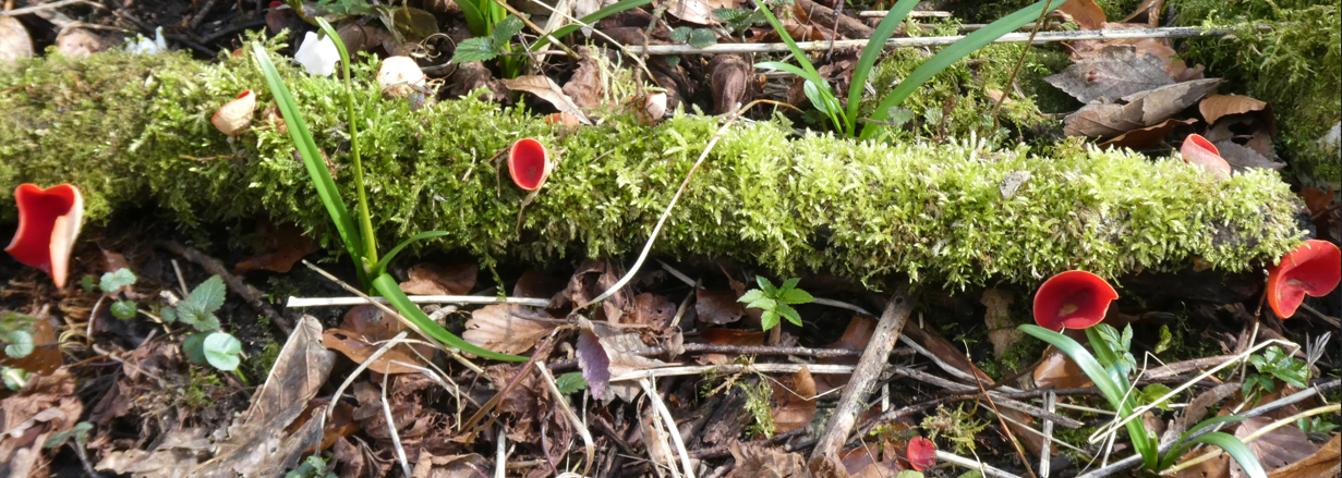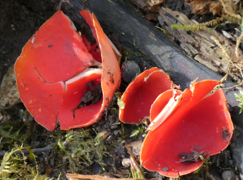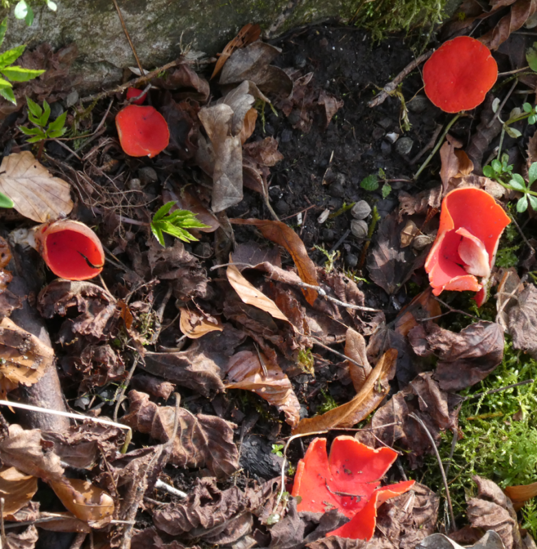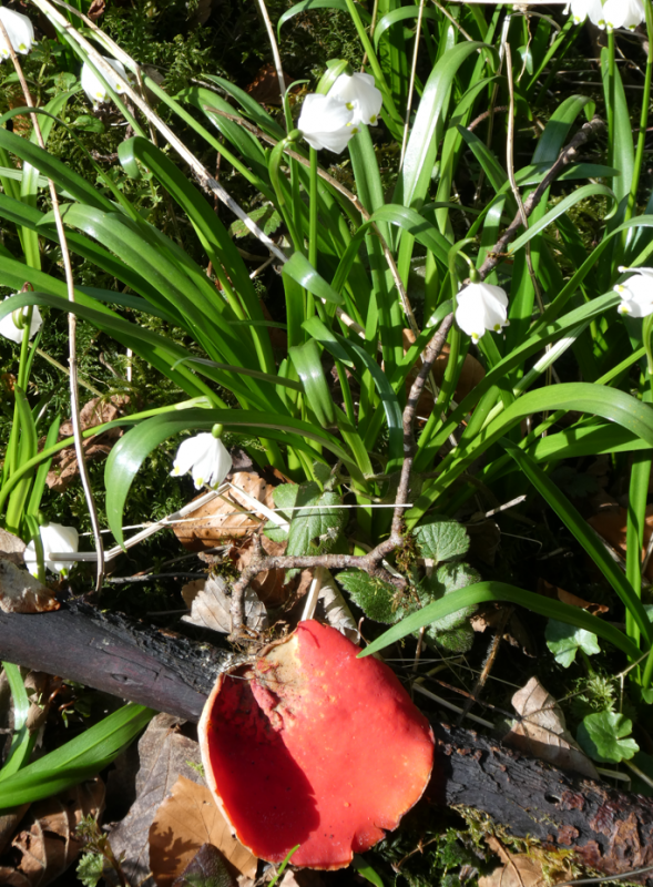 .............Märzenbecher und Zinnoberrote Kelchbecherlinge: