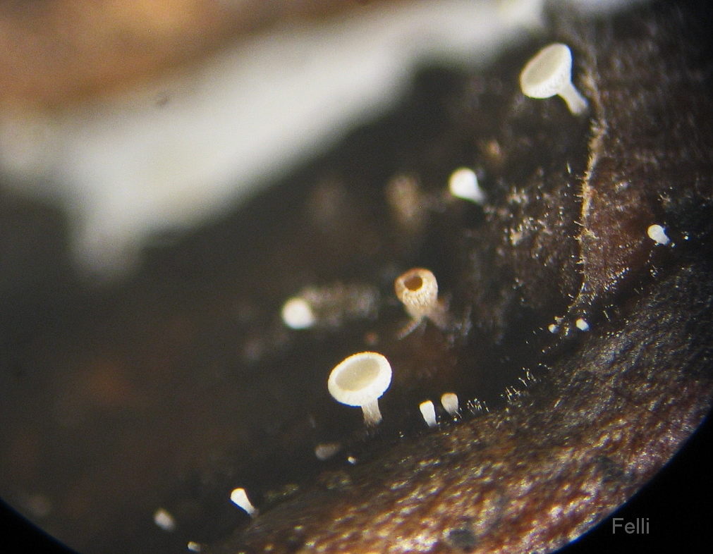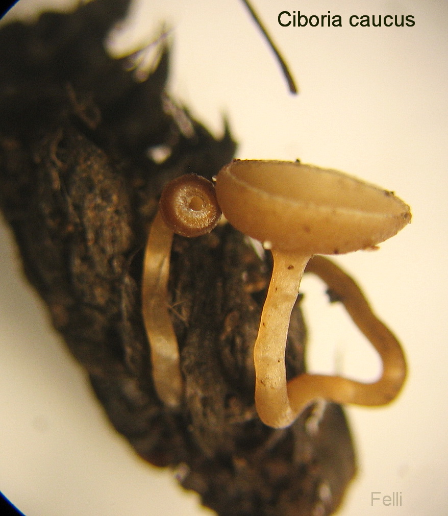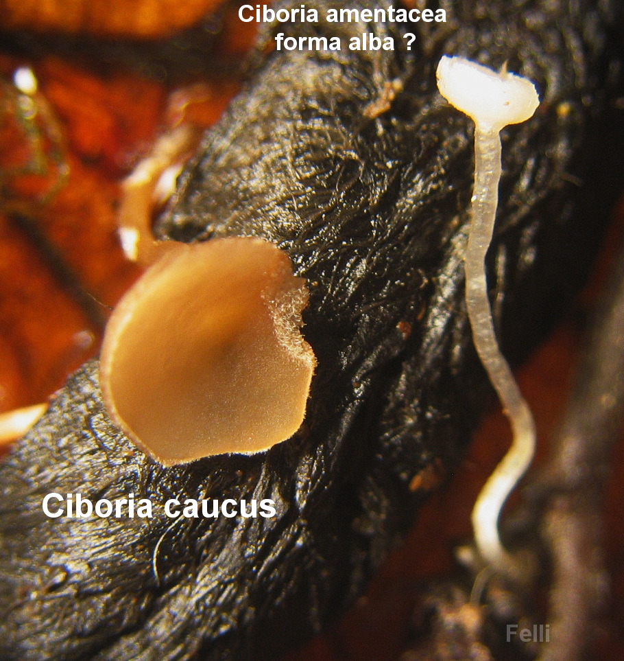 Ciboria amentacea, hier in seiner weiße Form zusammen mit C.c
