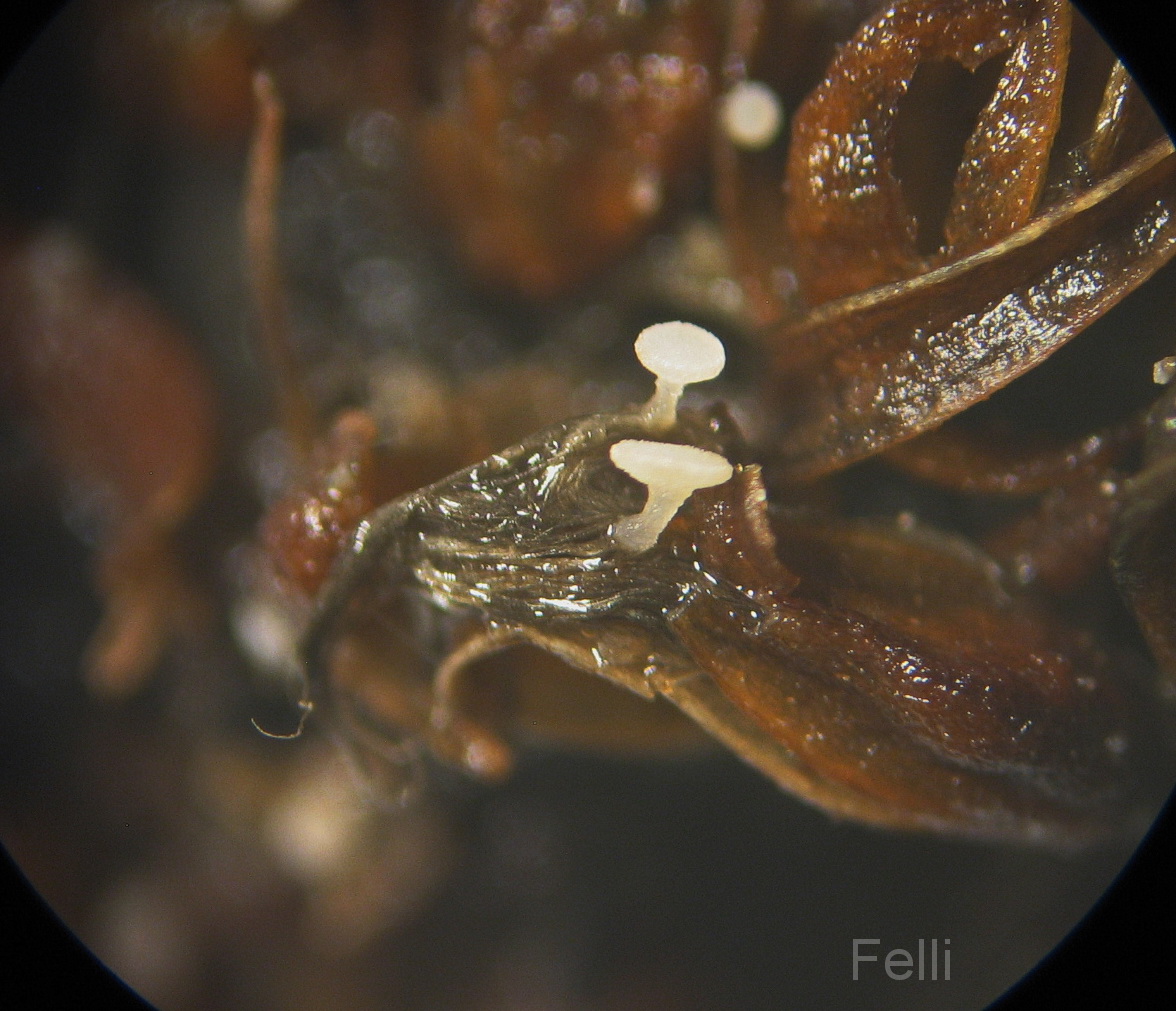 auch auf den weiblichen Salweidenblütenkätzchen gab es kleine gestielt Becherchen zu bewundern