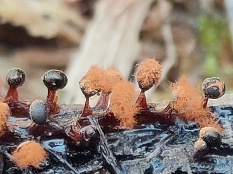 Hallo, ich durfte heute eine schöne Gruppe gestielter Kugelschleimpilze finden.