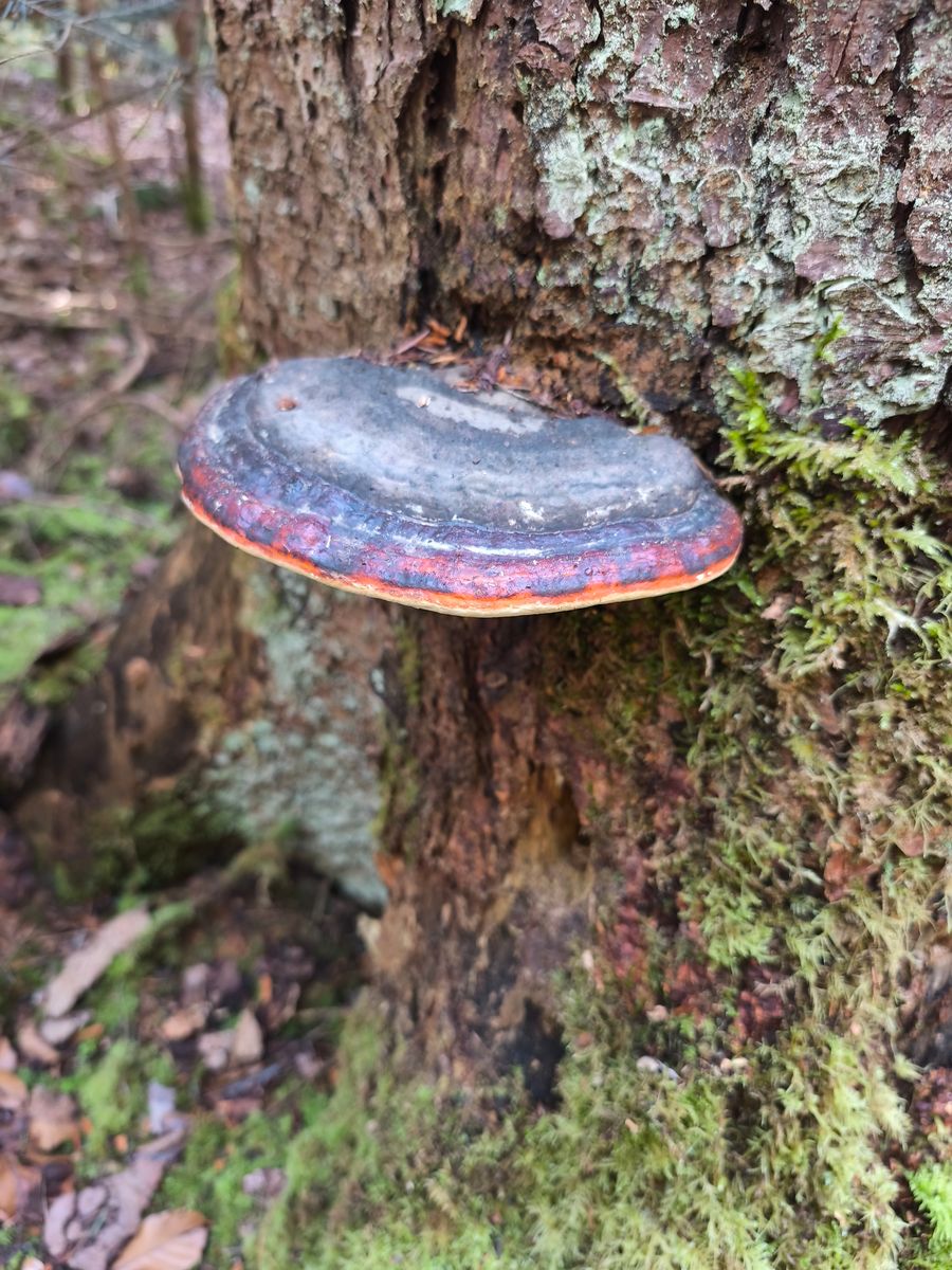 Moin, dazu würde ich Rotrandiger Baumschwamm bzw. Fomitopsis pinicola sagen