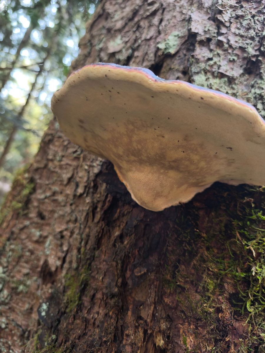 Links tippen wir auf Rotrandigen Baumschwamm, rechts unterscheidet sich ein bisschen in Farbe und Form.