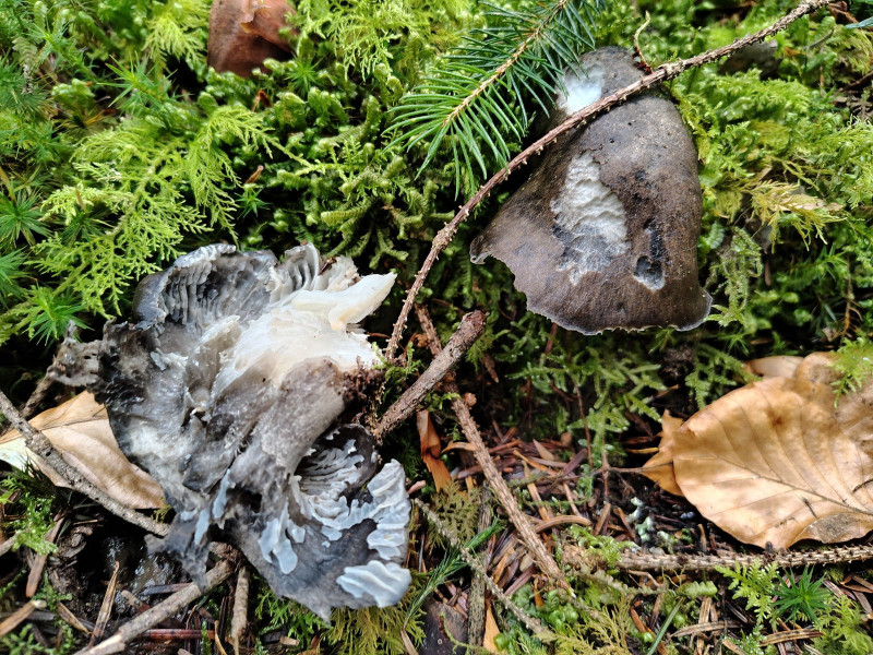 zwar nur zwei Fruchtkörper, aber eine neue Fundstelle, die erste, die ich komplett alleine gefunden habe macht natürlich trotzdem glücklich. Übrigens ganz im Gegensatz zu manch anderen Berichten im strammen, von Weißtannen dominierten Kalknadelwald. Im Herbst gibts genau an dieser Stelle weitere tannenbegleitende Raritäten wie Butyriboletus roseogriseus, Butyriboletus subappendiculatus, Hygrophorus capreolarius, Hygrophorus abieticola, Lactarius intermedius, Calonarius subgracilis, Calonarius haasii und Calonarius atrovirens.