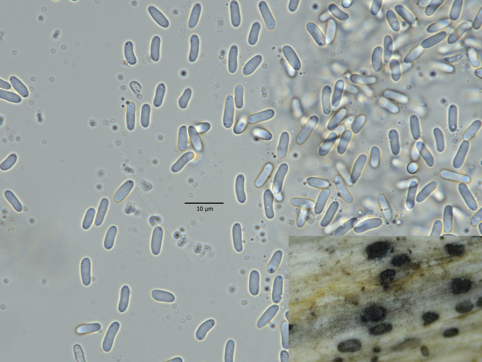 Ich kenne drei "Phoma"-Arten auf Urtica: Phoma piskorzii (= Plenodomus acutus), Phoma acuta (= Leptosphaeria doliolum, trotz des Namens) und Phomatodes nebulosa. Die beiden letzteren haben deutlich kürzere Konidien. Phomatodes nebulosa habe ich auch einmal in meiner Gegend gefunden, allerdings zur Bestimmung sequenziert (und dann in der Mycologia Bavarica publiziert). Man muss bei den Phoma-artigen Nebenfruchtkörpern aufpassen: Konidienform und -maße, Verteilung der Öltröpfchen, Makroskopie der Pycnidien. Hier passt (fast) alles: lange, schmale Konidien und Pycnidien mit nur je einem Ostiolum (also nicht zusammenfließend). Was ich nicht gesehen habe: septierte Konidien. Die sind für die Art von Boerema & Loerakker (1981) als "occasionally" beschrieben worden, mir fehlt da aber noch die Erfahrung, wie konstant das Merkmal auftritt und ob meine Pycnidien vielleicht noch zu jung dafür waren.