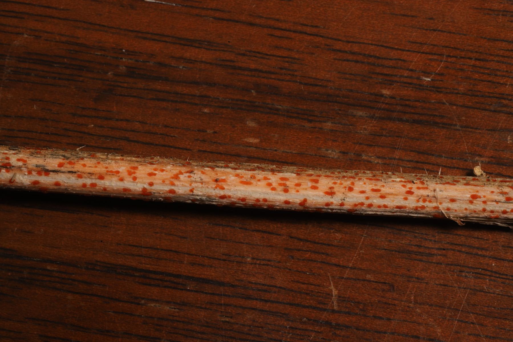 Die anderen beiden Funde stammen vom selben Spaziergang. Ich habe einen Brennnesselhalm (vorjährig natürlich) mit nach Hause genommen, weil mal wieder so schön die Calloria urticae drauf saß. Schöne rote Kissen, also die Nebenfruchtform. Zudem waren die obligatorischen, schwarzen Punkterl drauf. Letztere haben mich insbesondere interessiert. Es war eine Nebenfruchtform. Im Bino waren nur wenige komplett ausgereift und zeigten ein etwas verlängertes Ostiolum. Makroskopisch sah es nach Leptosphaeria s.l. aus, nicht nach Phomatodes. Natürlich muss man mikroskopieren: