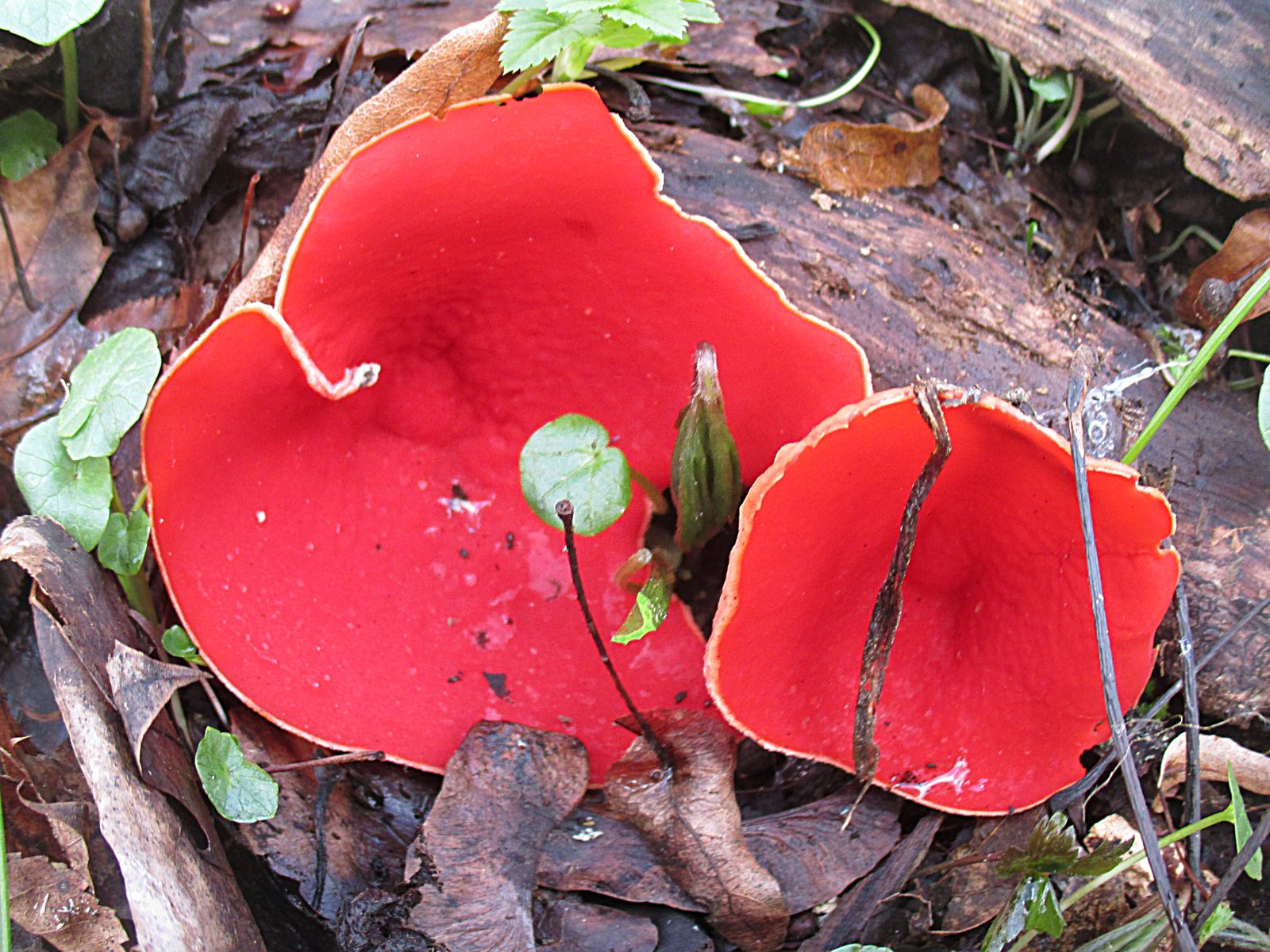 Den Gemeinen Kelchbecherling (Sarcoscypha austriaca) konnte ich an zwei neuen Stellen entdecken.