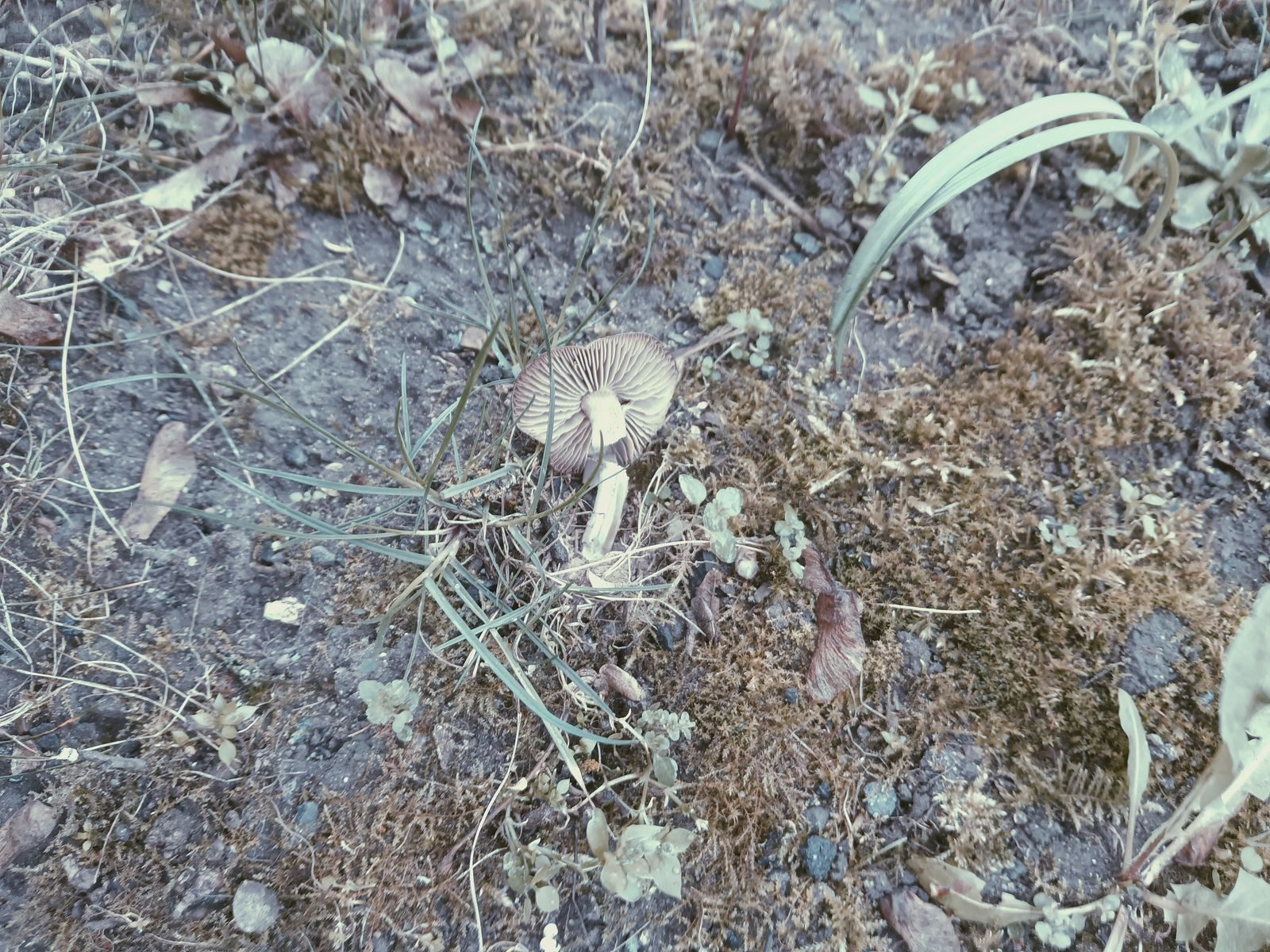 2 einzelne FrK, geruchlos, Stielfarbe ungefähr wie Hut, graubraun, glatt (eher grau bereift als schuppig), keine Verfärbungen bei Druck/Abriss. Humoser Stadtboden, lueckiges Parkbiotop.
