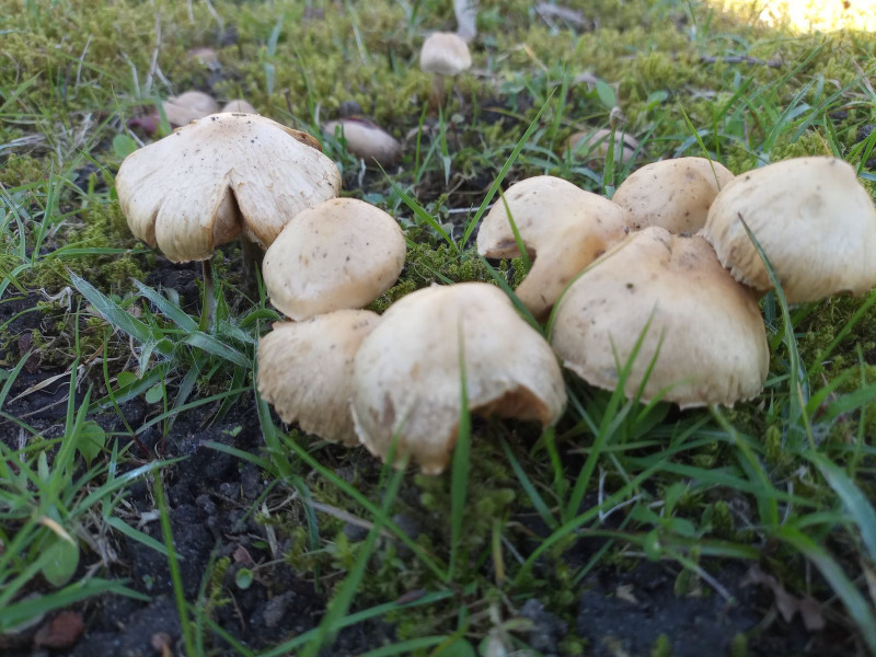 vor zwei Wochen fand ich im Park eine Gruppe von Fruchtkörpern. Es ist mir nicht gelungen, sie zu identifizieren. Der Hut hat mich an einen Risspilz erinnert: