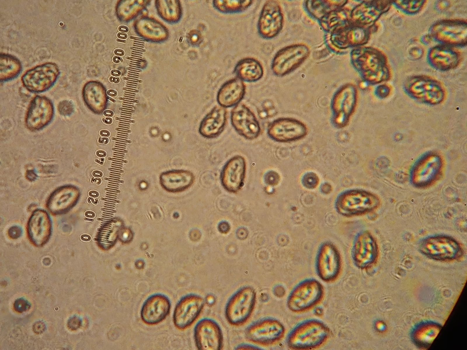 Sporenpulver am ehesten graubraun. Bild der Sporen, die ich aber nicht gemessen habe: