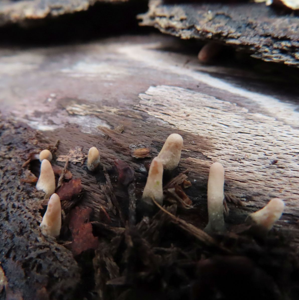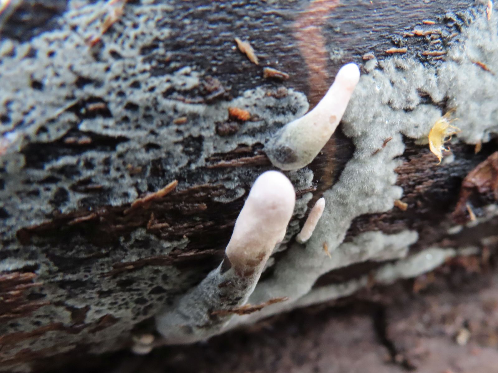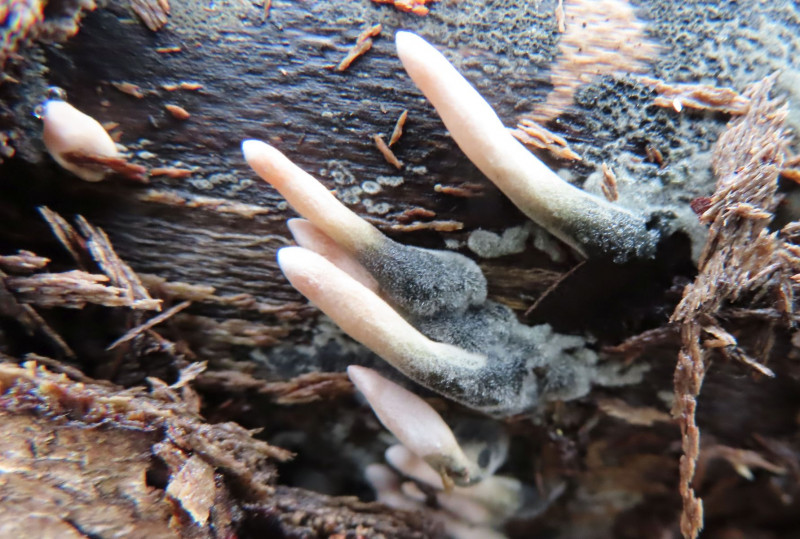 Beim Anlupfen der Rinde zeigten sich spargelähnliche helle zylindrische zugespitze FK.
