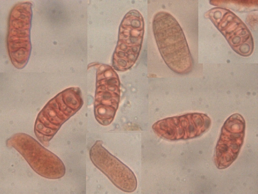 Sporen mit bis zu 7 Septen und ca. 19 x 7 mµ führen zu Verschiedensporige Gallertträne (Dacrymyces variisporus)