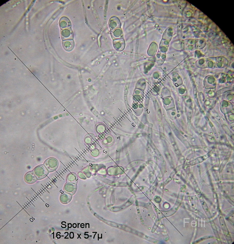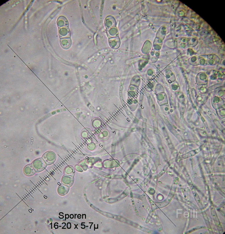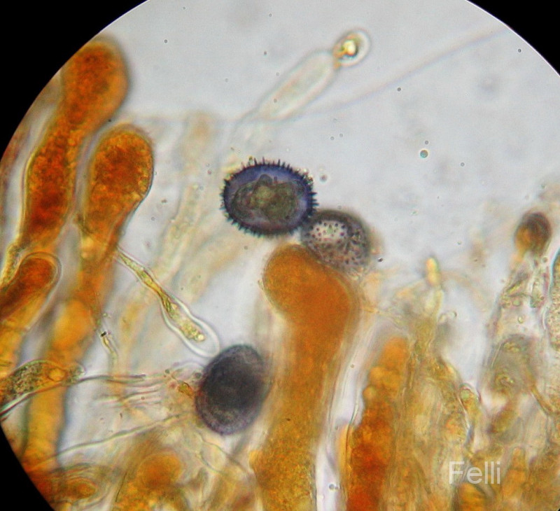 mit fransigem Randbereich, breitovalen stachligen und Melzers positiven Sporen
